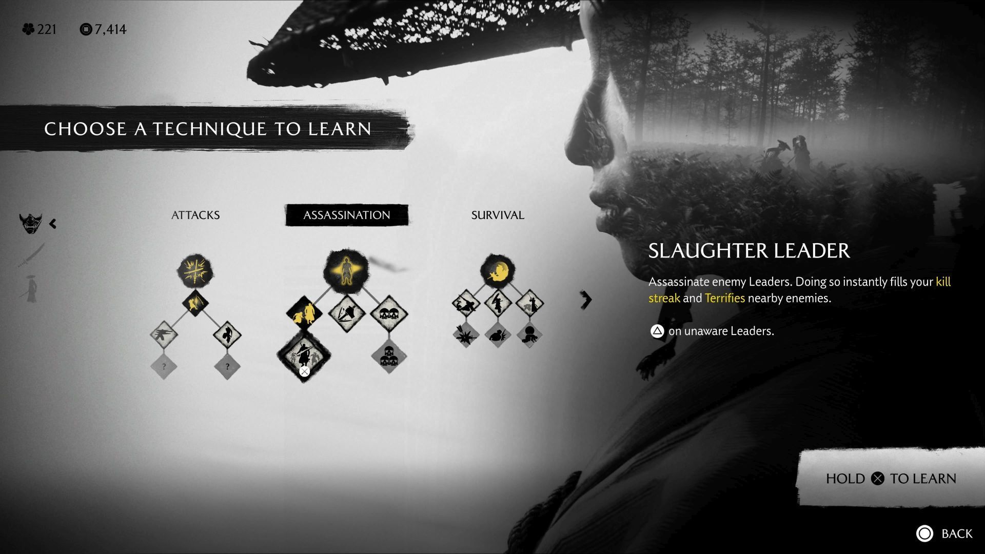- Wymienione umiejętności pozwalają zabijać dużych wrogów jednym ciosem. Szczególnie przydatna jest ta druga - po ustawieniu się za plecami dowódcy pojawi się opcja Zgładzenie z dokonania dekapitacji na dowódcy. Akcja ta to nie tylko natychmiastowa śmierć wroga, ale też wywołanie przerażenia u okolicznych "zwykłych" przeciwników. Możecie to wykorzystać żeby zadać im kilka łatwych ciosów.