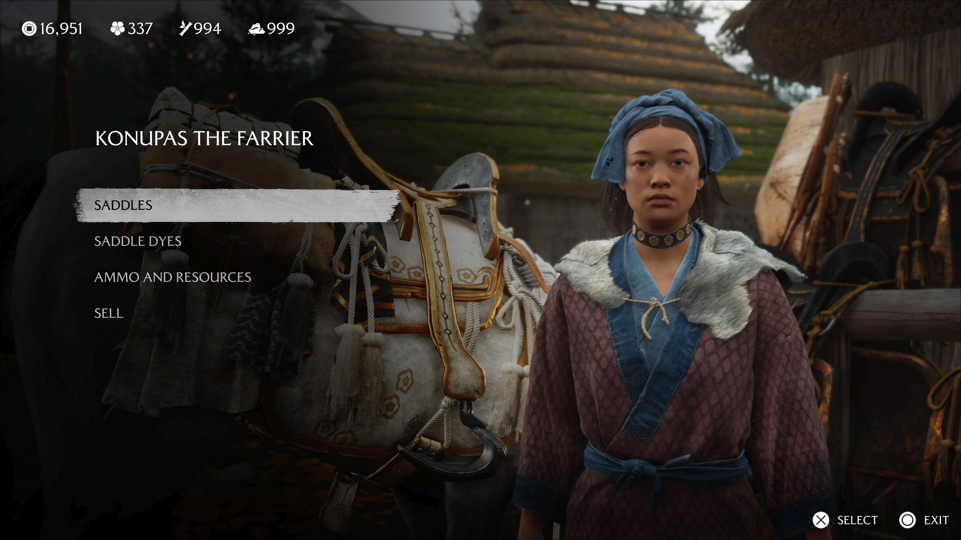 Siodła kupicie u handlarki Konupas. Możecie spotkać ją wędrując po otwartym świecie, ale znajdziecie ją również w lokacji Husko Kotan w regionie Głuszy Nayoro. Poza nowym rodzajem siodła, Konupas sprzedaje również barwniki do już posiadanego oporządzenia. Podobnie jak w przypadku innych barwników, za towary Konupas zapłacicie kwiatami.