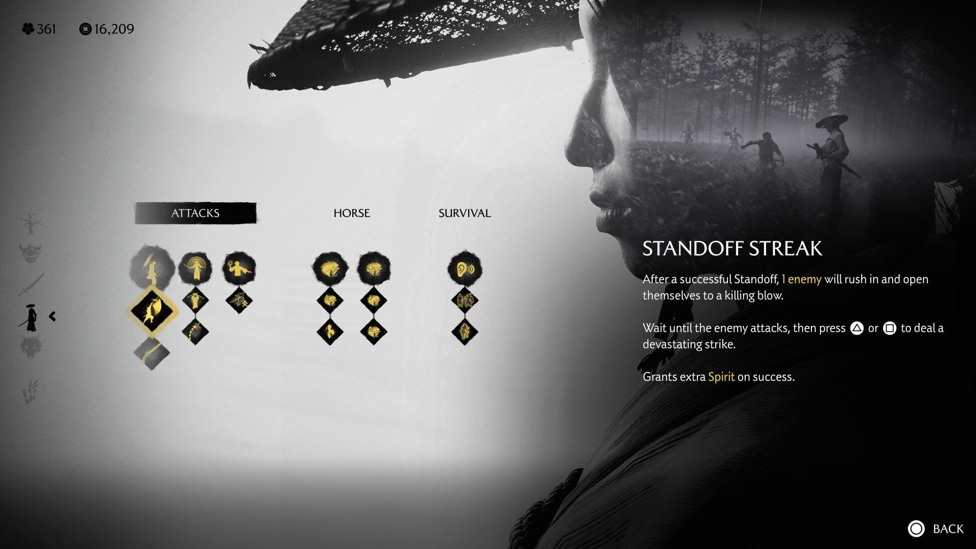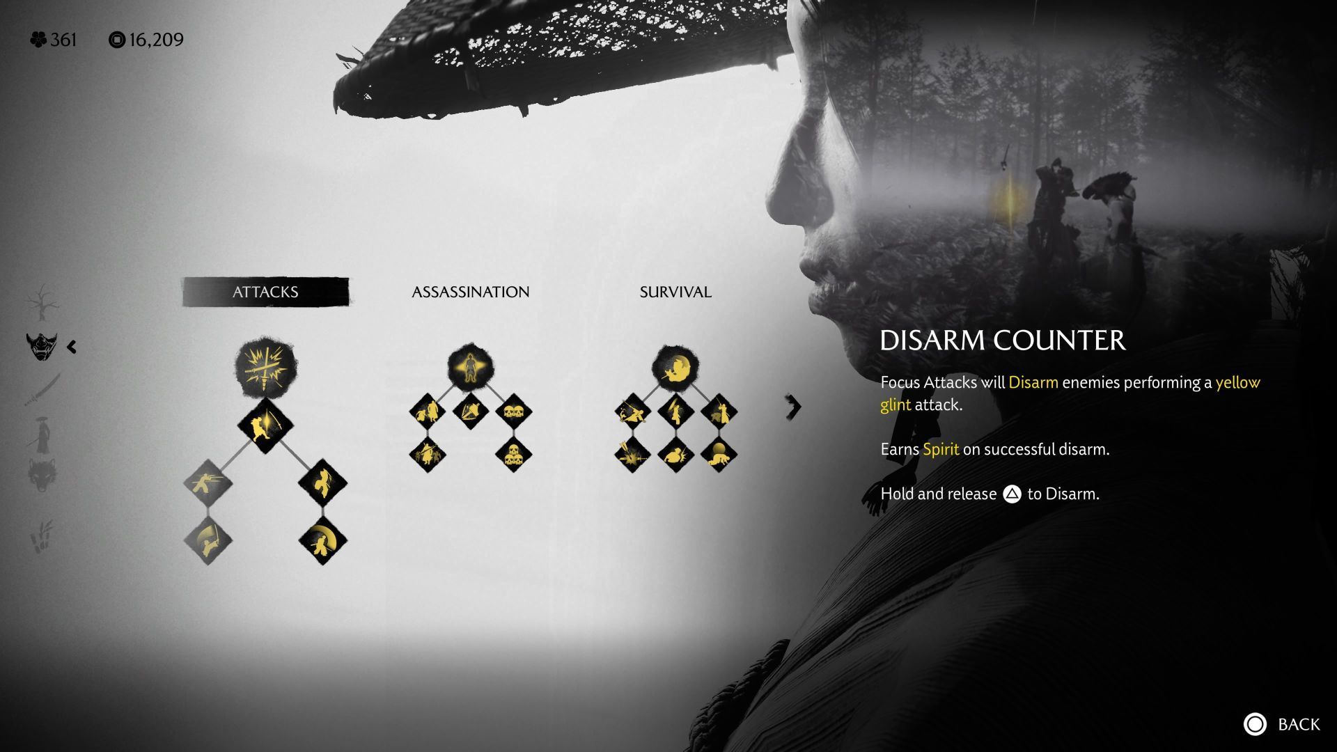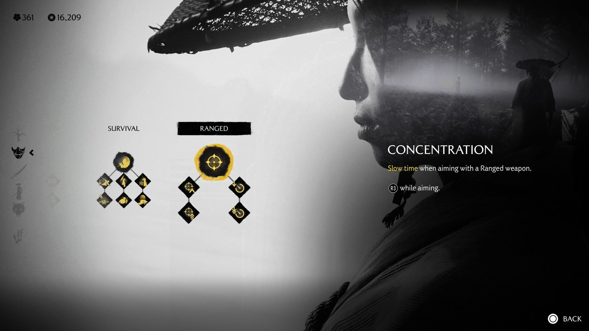Dodatkowo możecie odblokować umiejętność z używania pistoletu Tanzutsu w prowokacjach. Atsu może wcisnąć R1 do wystrzelenia z pistoletu zamiast skorzystać ze swojego ostrza. Pierwsza taka akcja nagrodzona zostanie też trofeum.