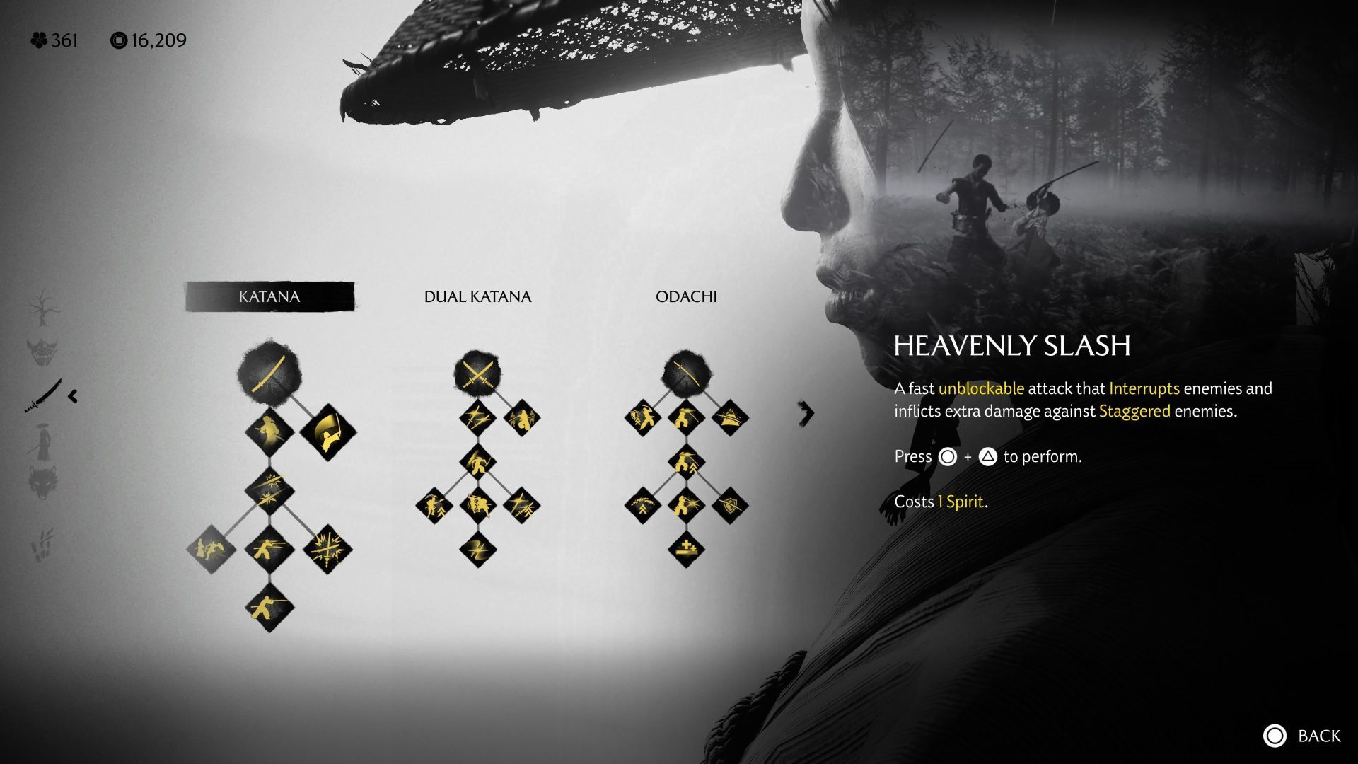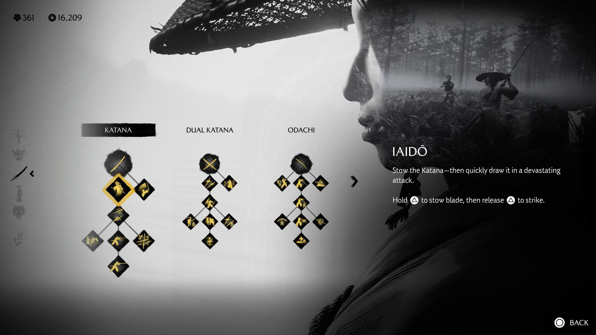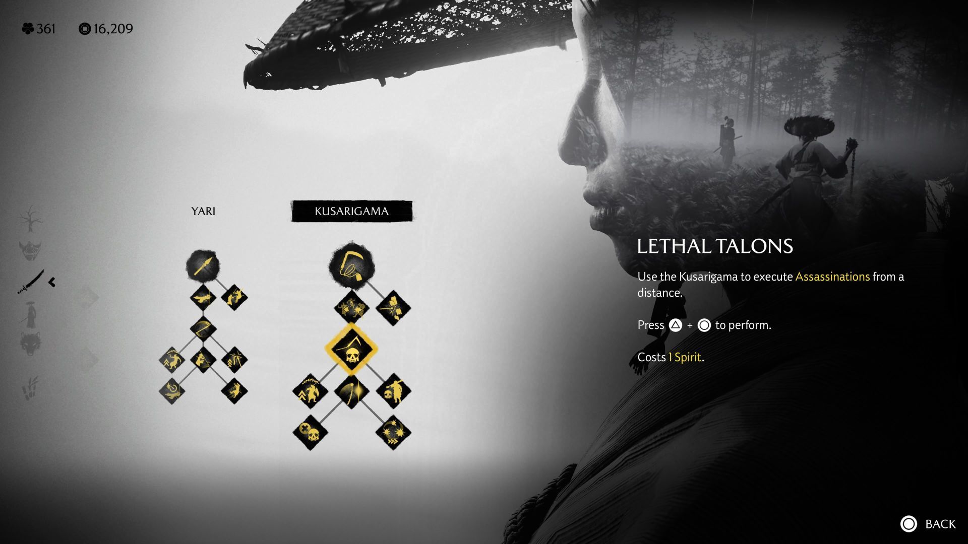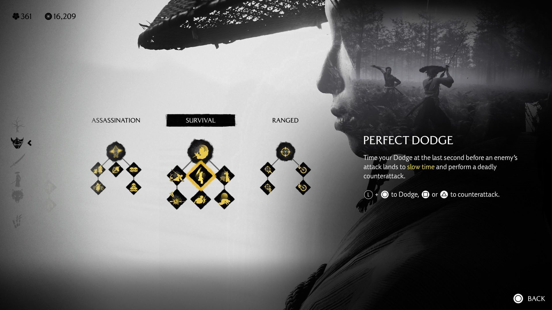 Dodatkowo możecie odblokować umiejętność z używania pistoletu Tanzutsu w prowokacjach. Atsu może wcisnąć R1 do wystrzelenia z pistoletu zamiast skorzystać ze swojego ostrza. Pierwsza taka akcja nagrodzona zostanie też trofeum.