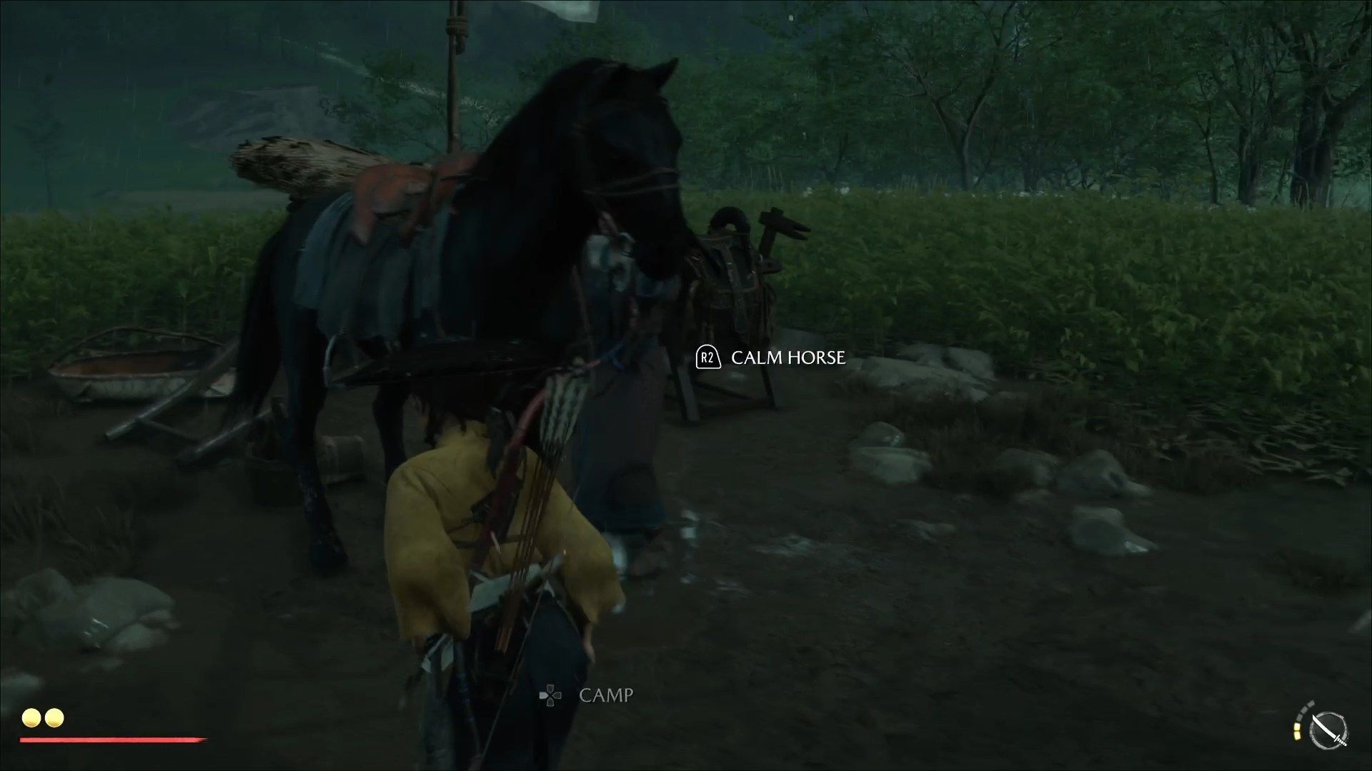 Podobnie jak Ghost of Tsushima, Ghost of Yotei nie zawiera wskaźników pokazujących wam gdzie się udać. Kierunek obranego przez was celu, czy to celu misji lub też oznaczonego na mapie celu podróży, pokazują podmuchy wiatru. Możecie przywołać je ruchem w górę na panelu dotykowym kontrolera - podążając za nimi znajdziecie to, czego szukacie. Ponadto podczas podróży wypatrujcie złotego ptaka, który okazjonalnie sfruwa z nieba i trzyma się tuż nad Atsu. Pojawia się on, gdy jesteście blisko ważnego miejsca, takiego jak gorące źródła lub stojaki bambusowe. Podążajcie za nim by odkryć punkt, którego jeszcze nie mieliście na waszej mapie.