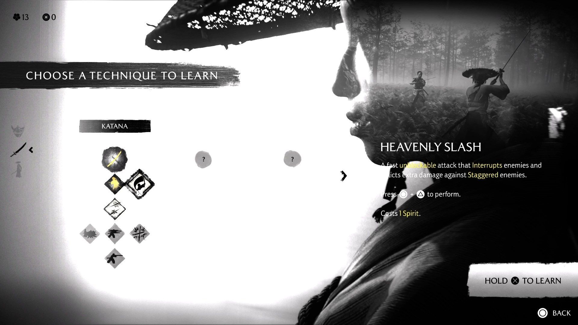 Zdobywane przez Atsu punkty umiejętności możecie wydawać na wiele przydatnych ulepszeń. Niektórymi z nich są potężne specjalne ataki, których użycie wymaga hartu ducha. Na początku gry najlepiej je zignorować - choć są bardzo przydatne, rozpoczynając przygodę macie bardzo mało hartu ducha, który jest niezbędny do leczenia się. Swoje pierwsze punkty umiejętności wydajcie zatem na inne ulepszenia, a do tych umiejętności wróćcie po zdobyciu większej ilości hartu ducha.