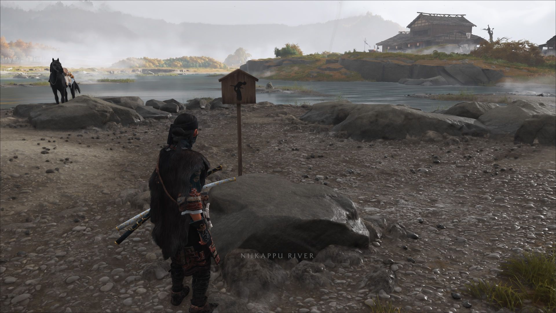 - Po znalezieniu nowej tabliczki możecie pokłonić się (przejechanie palcem w dół na touchpadzie) lub zacząć grać na shamisenie (przejechanie palcem w lewo - może to być domyślna Pieśń Atsu). Dana lokacja powinna "zareagować" na Waszą akcję, np. pojawieniem się roju owadów, ryb wyskakujących z wody czy grupy krabów. To potwierdzenie poprawnie wykonanej akcji.