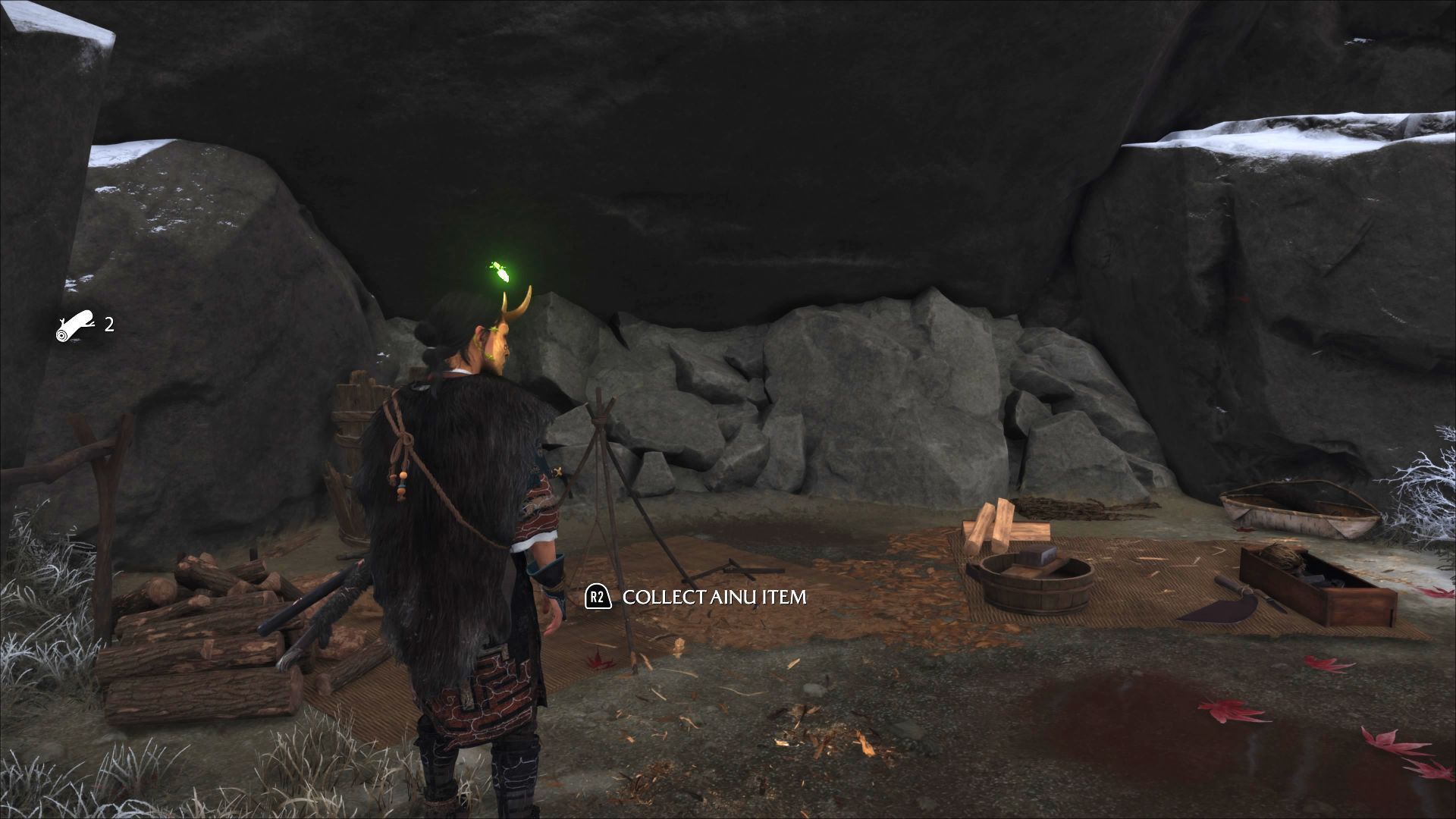 Sekretu należy szukać na zachód od pierwszego Obozowiska Matsumae, czyli tego z południowej części regionu obok ścieżki do Łąk Yotei. Dotrzyjcie do kanionu i zbadajcie mały obóz niedaleko rzeki.