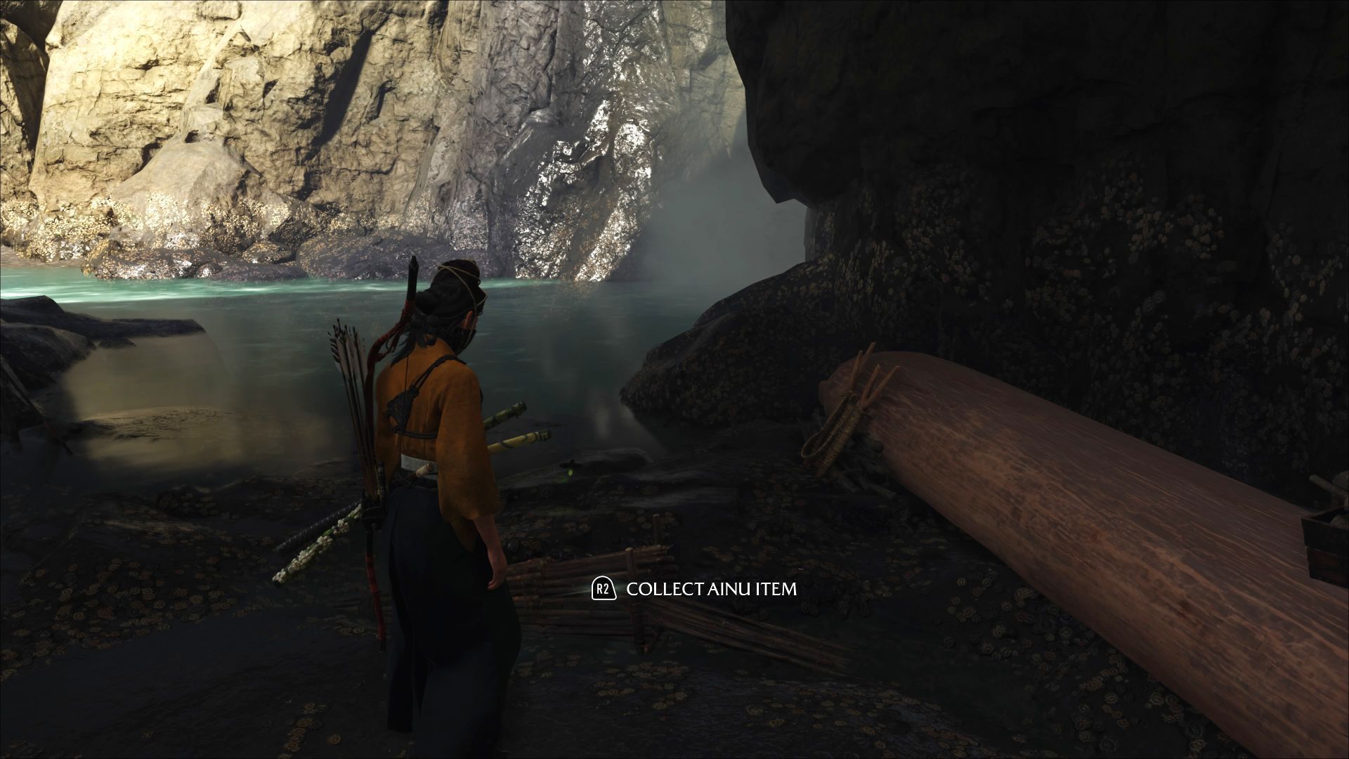 - Na wyspie Ezo do odnalezienia jest w sumie 30 ajnoskich przedmiotów i możecie je zbierać w dowolnej kolejności. W ich lokalizowaniu mogą pomagać latające świecące owady (pojawią się w otoczeniu znajdźki, ale nie prowadzą dokładnie do sekretu - trzeba przeszukać okolicę) oraz zagranie Pieśni Ajnów na shamisenie.