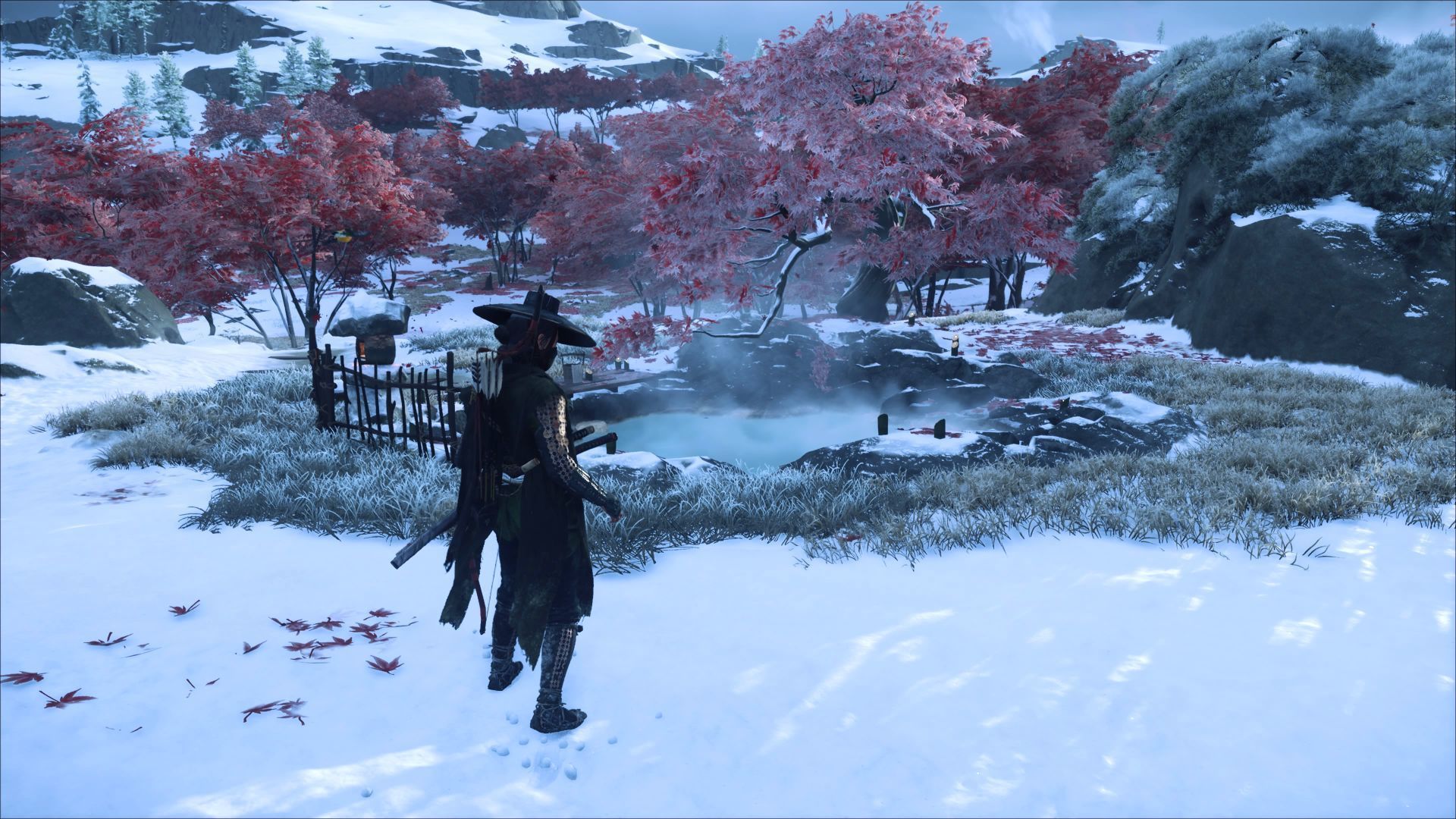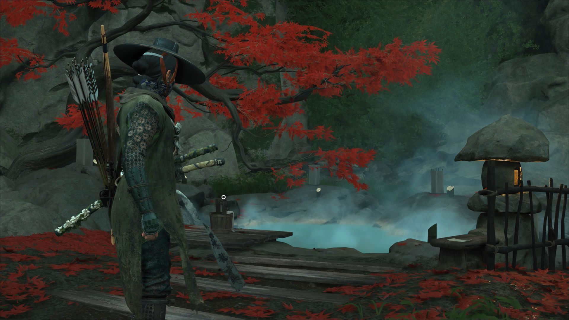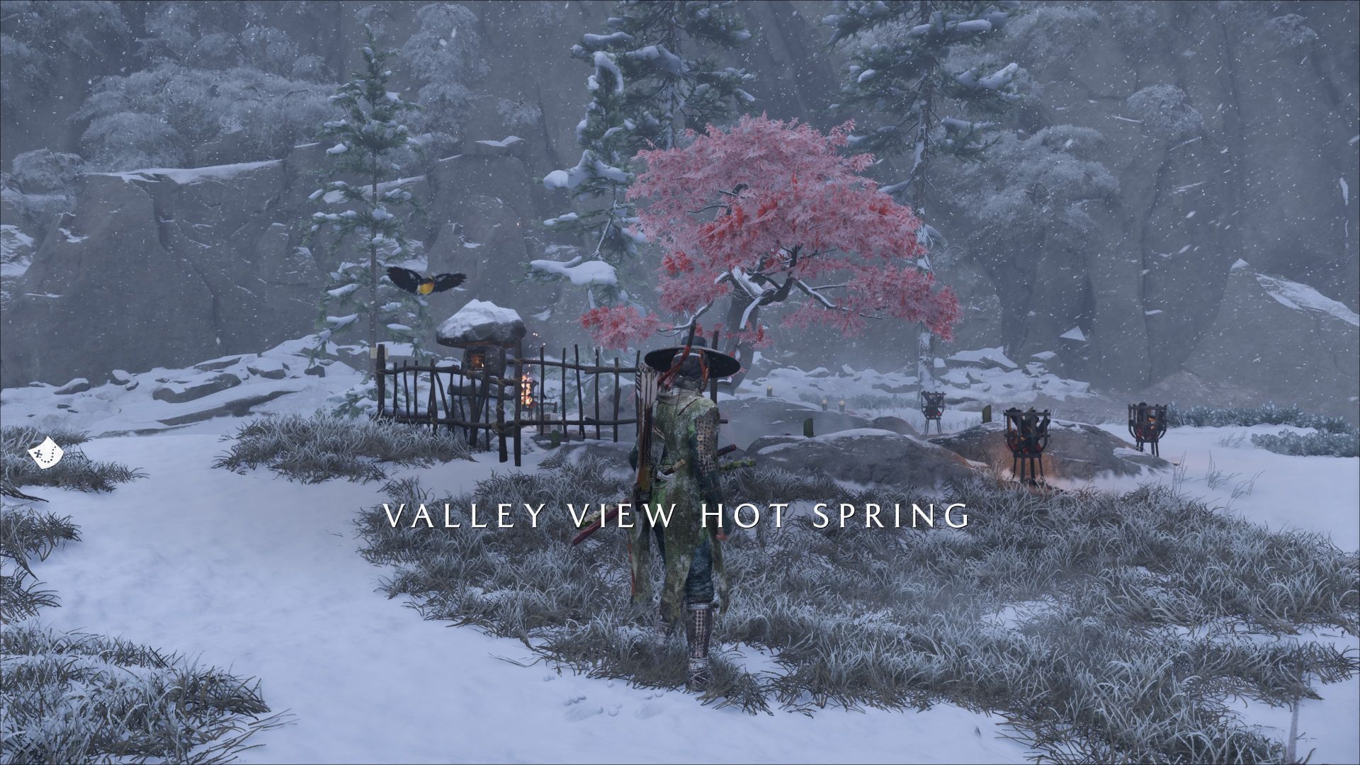 - Gorące źródła Cienia Yotei - na zachód od stajni. W pobliżu źródła znajdziecie również Talizman Obfitych Plonów.
