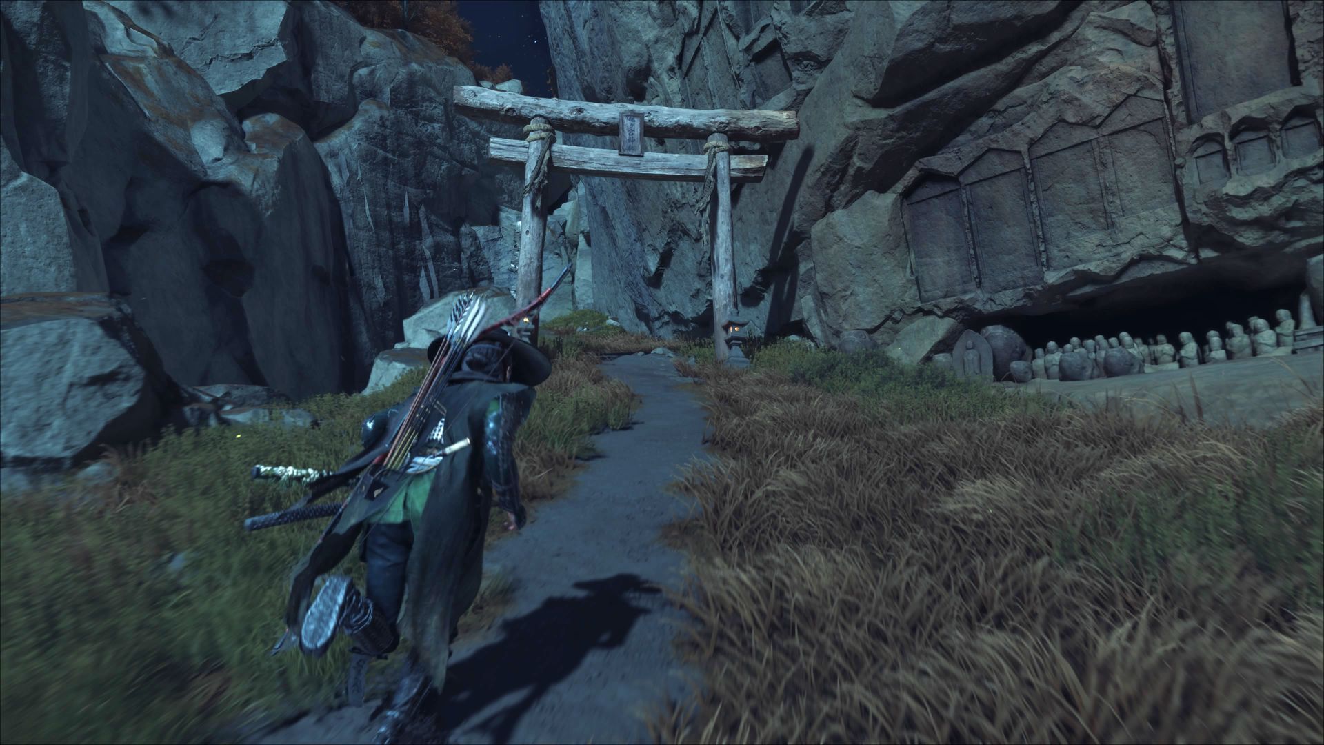 Ta konkretna kapliczka to unikalny przypadek, bo nie możecie do niej dotrzeć podczas swobodnej eksploracji północnej części regionu - natraficie na wysoką półkę, do której Atsu nie będzie mogła doskoczyć. Miejsce to odwiedzicie w głównej fabule, podczas rozwiązywania jednego z zadań powiązanych z bossem Oni. Bohaterka odwiedzi wtedy to miejsce wraz z drugą postacią fabularną i będzie mogła się podciągnąć (powyższy obrazek).