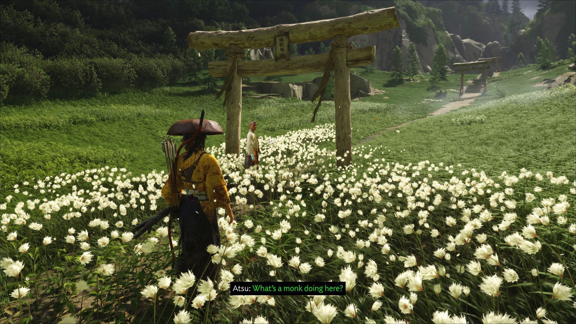 Wspinaczkę można rozpocząć na zachodnim krańcu regionu. Akcja w pewnym momencie przeniesie się na szczyt Góry Yotei. Oprócz samej kapliczki na Atsu czekają tam też inne aktywności i znajdźki. Zestawiliśmy je na osobnej stronie Jak wejść na Górę Yotei?.