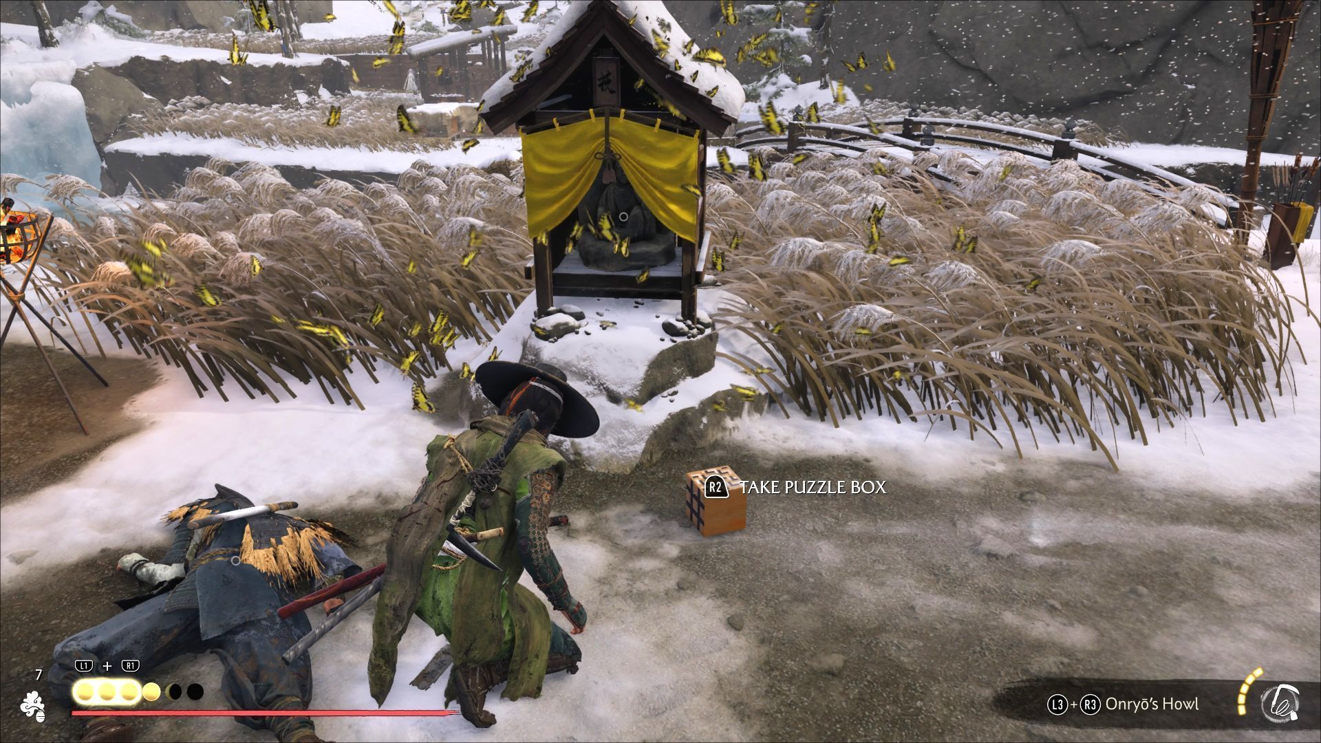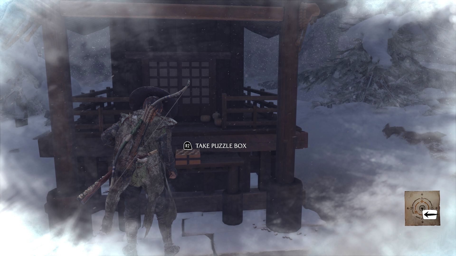 Odwiedźcie Ołtarz Kitsune przy zachodnim klifie, na południe od Kryjówki śnieżnej zarazy. Pudełko leży na ołtarzu.