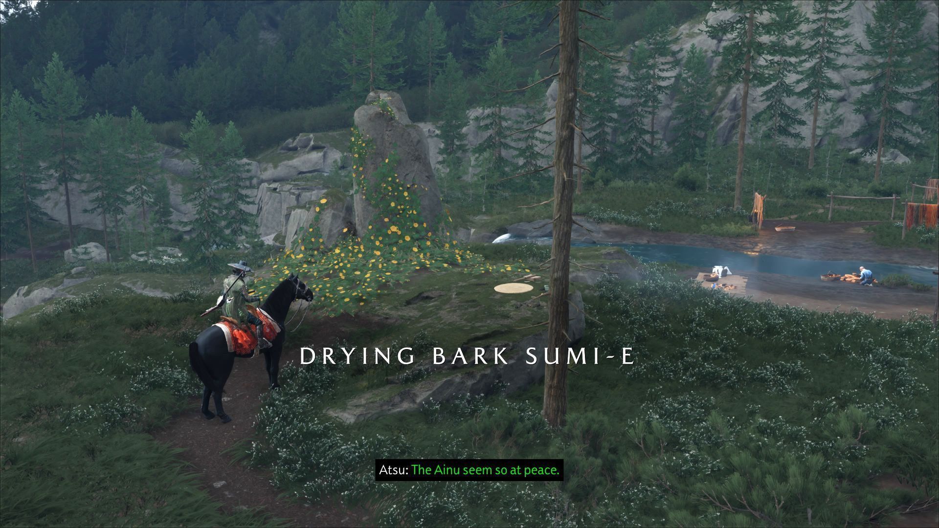 - Sumi-e to monochromatyczne obrazy tworzone przy użyciu czarnego tuszu. Protagonistka Ghost of Yotei, Atsu, może oddać się procesowi tworzenia obrazów w kilku miejscach na mapie.