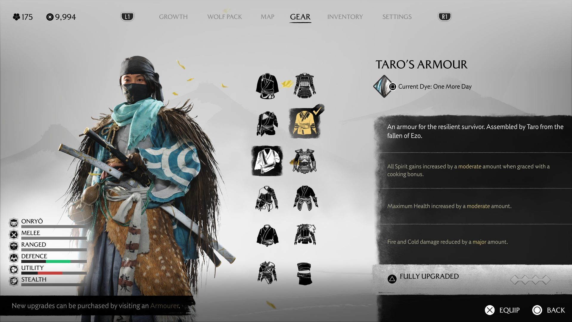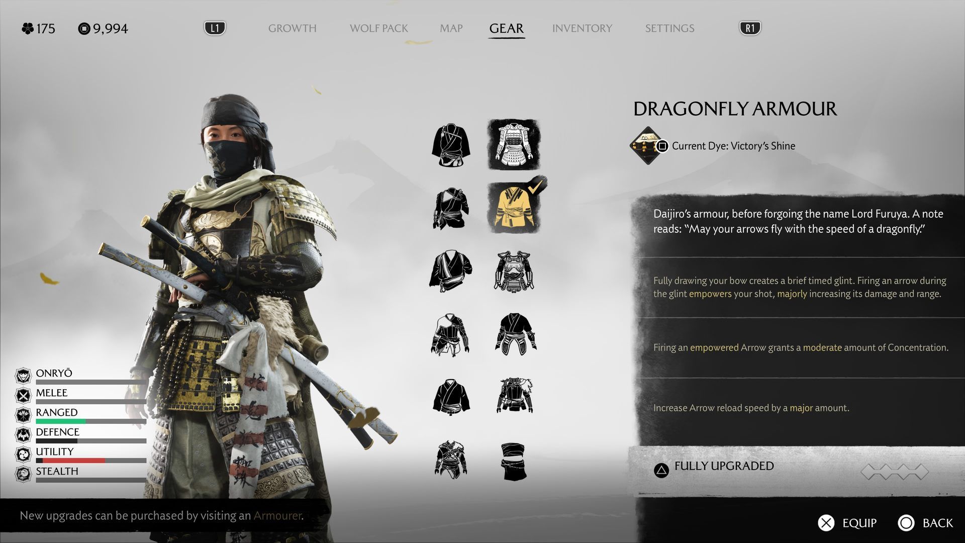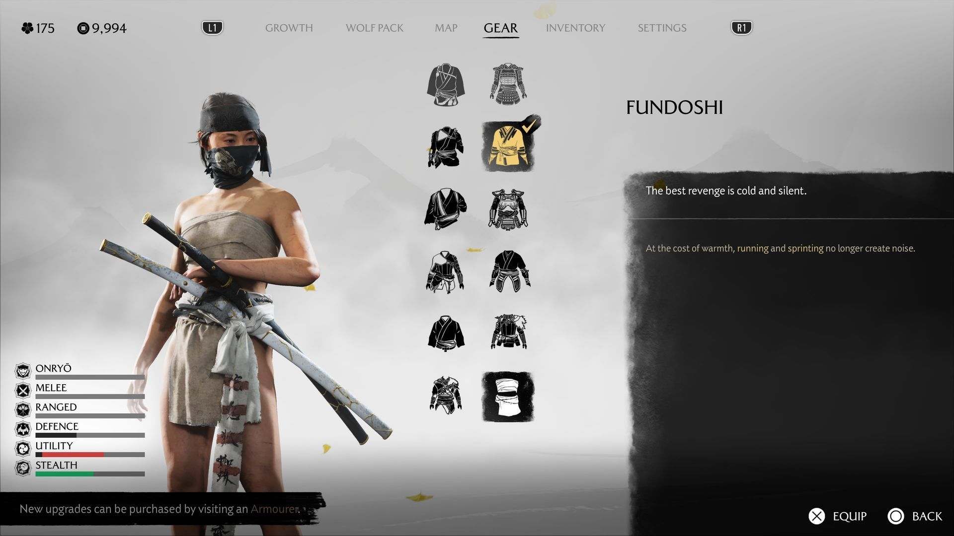 - Domyślna zbroja Atsu. Wraz z postępami w głównym wątku gry otrzymacie możliwość jej ulepszania.
