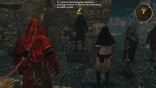 Zaraz po wyjściu z łodzi podejdź do grupki mieszczan i zainicjuj rozmowę z Tyrekiem, podżegaczem. Tego pana jeszcze spotkasz, w nieco mniej przyjemnych okolicznościach. Twoim głównym zadaniem (Za wszystkie dni, które przeminęły) jest dotarcie do zamku na pogrzeb swego ojca.