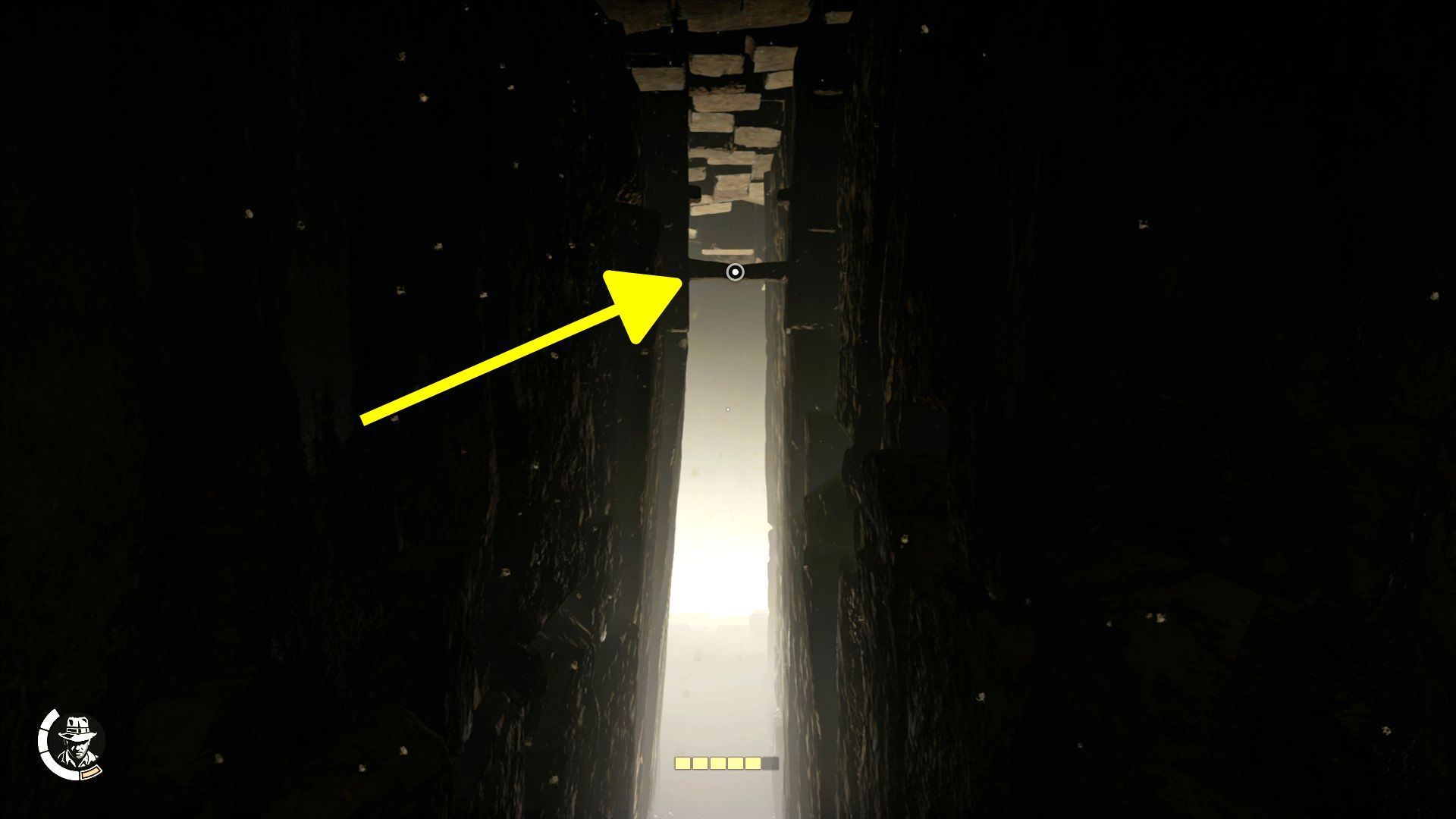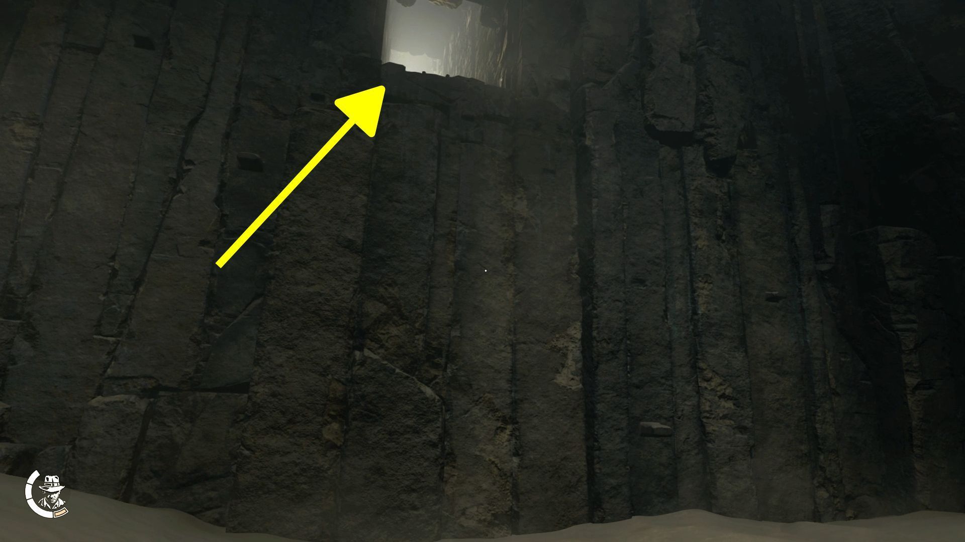 - Początkowo nie ruszajcie się z miejsca i pozwólcie żeby trochę piasku przedostało się do pomieszczenia. Kierujcie się w stronę górnego otworu pokazanego na powyższym obrazku.