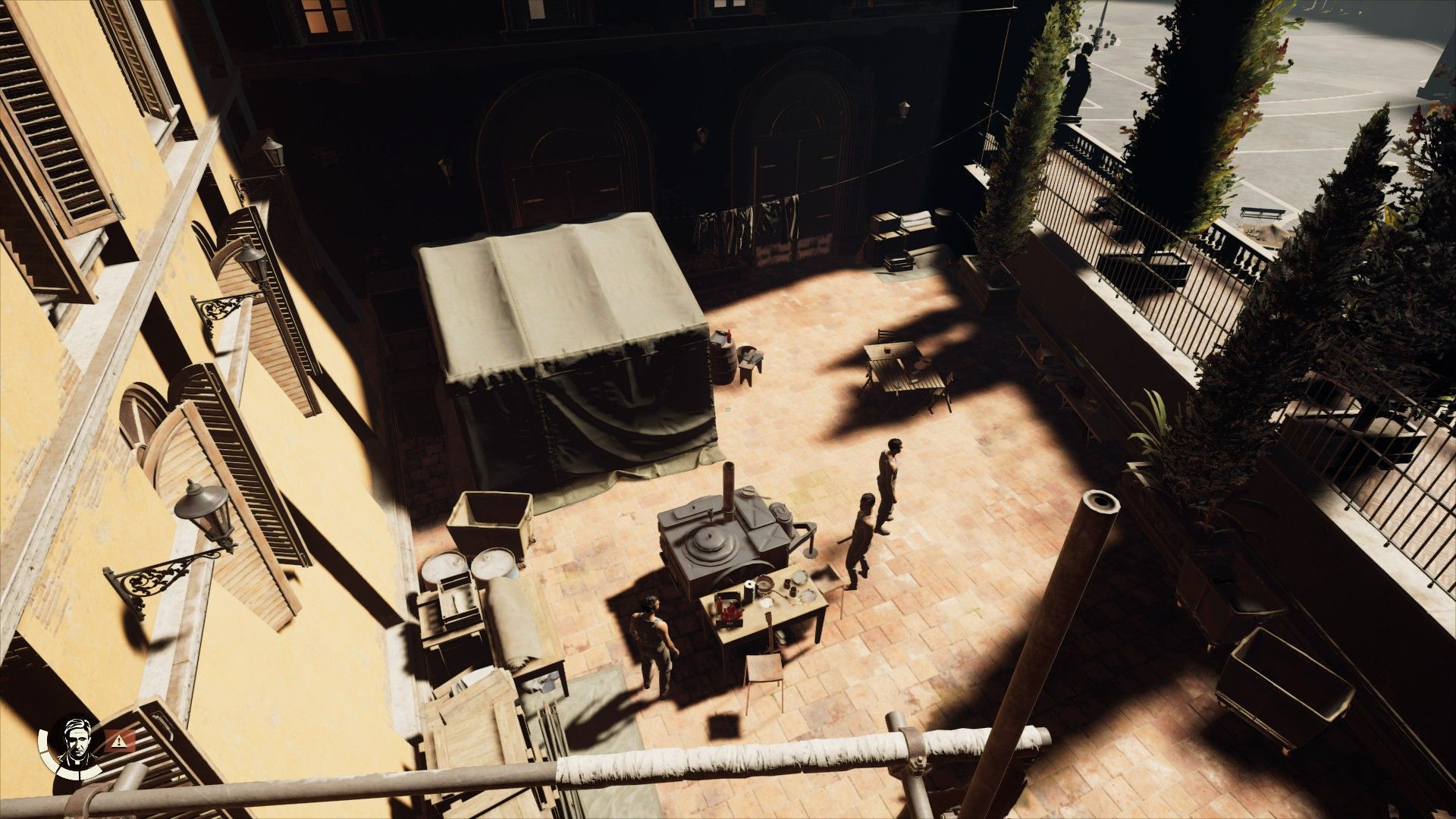 - W pobliżu miejsca, w którym obejrzeliście cut-scenkę jest niedostępny wcześniej dziedziniec z Czarnymi Koszulami (dostępu do niego blokowały zamknięte drzwi). Jest to południowa część mapy Watykanu. Zejdźcie na dziedziniec i rozprawcie się z 3 przeciwnikami.