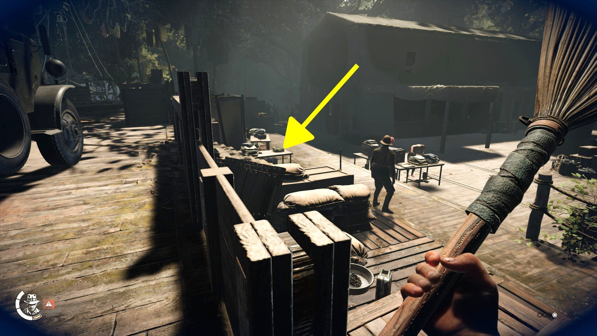- Zejdźcie po drabinie na dolny poziom wieży. Mundur Wehrmachtu leży na stole w miejscu z obrazka. Dodatkowo zdobędziecie też pistolet P08 oraz klucz Wehrmachtu - wykorzystacie go do otwarcia niektórych zamkniętych przejść w obozach faszystów.