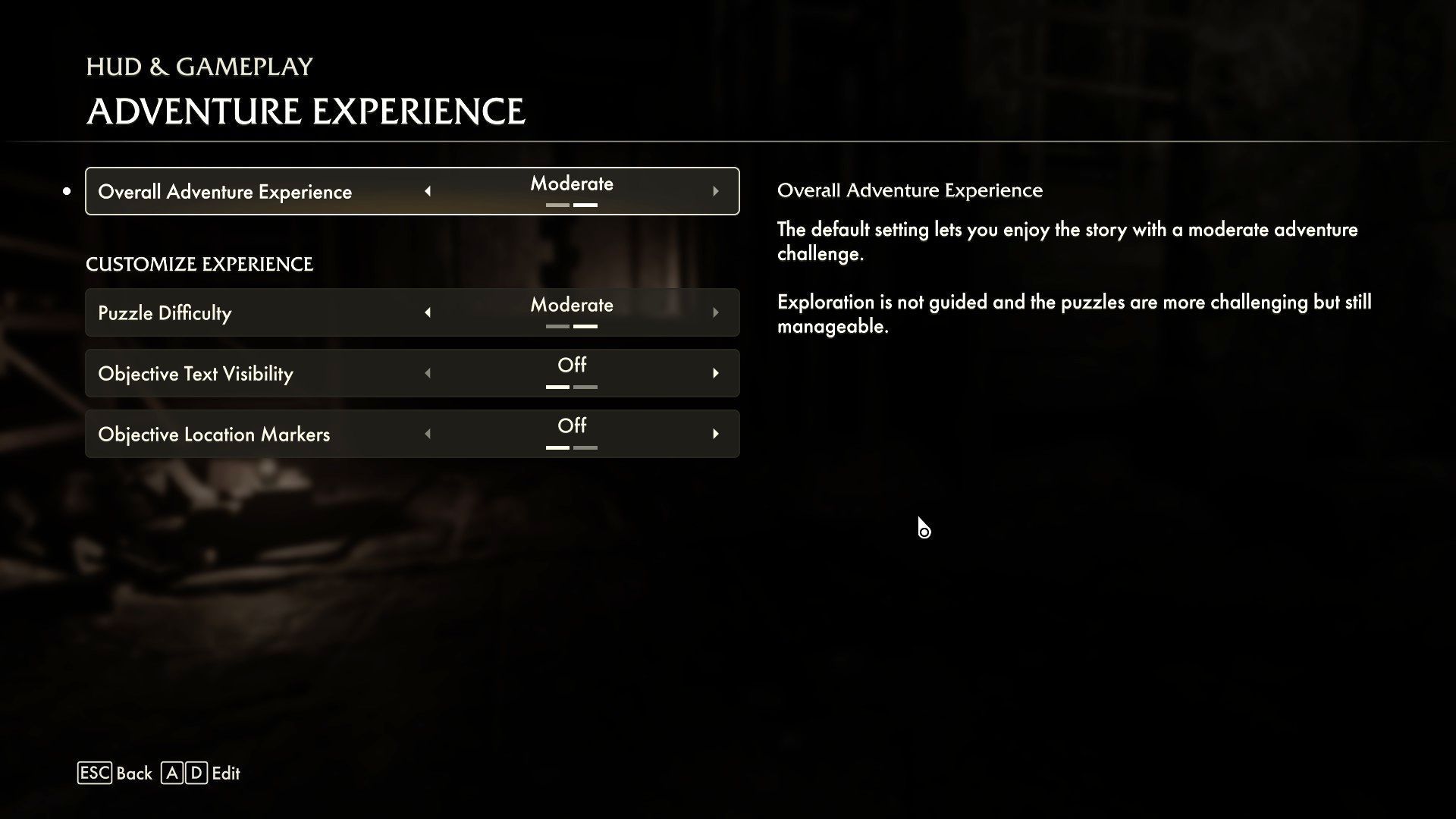 Wybory poziomów trudności walk i zagadek nie są ostateczne. Możecie je nie tylko zmienić już w trakcie właściwej gry, ale także dokładniej dostosować do własnych preferencji. Przejdźcie w tym celu do zakładki HUD i Rozgrywka, w której jest sekcja Poziom trudności gry.