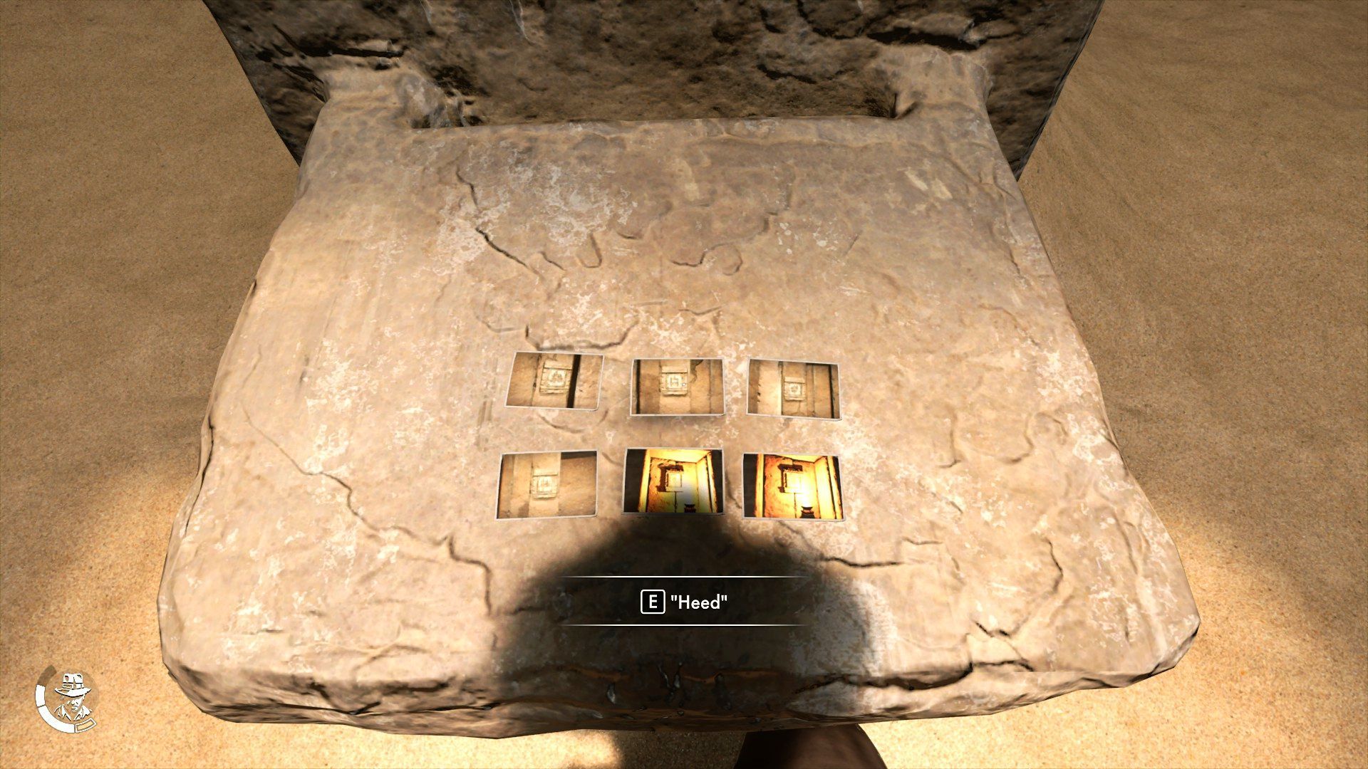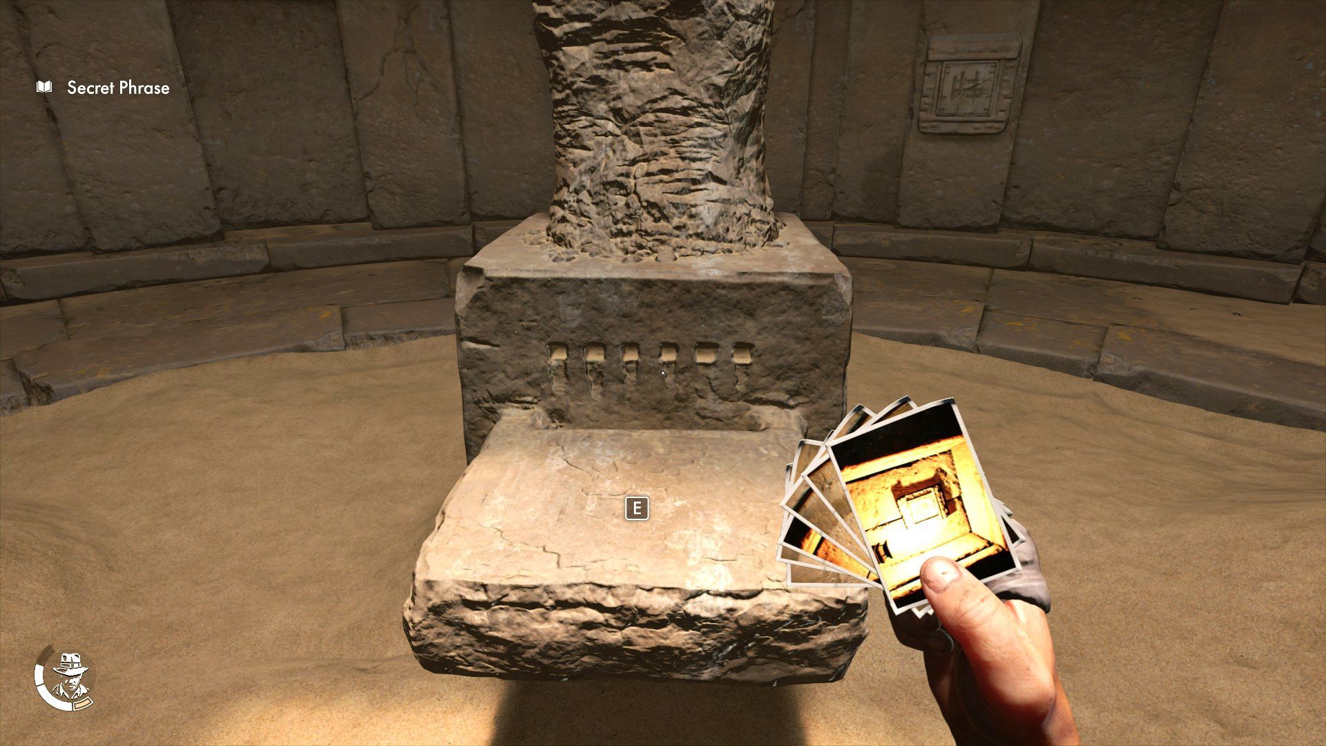 - Mając 6 zrobionych zdjęć wejdźcie w interakcję z centralnym piedestałem - Indy może rozmieścić na nim pozyskane zdjęcia.