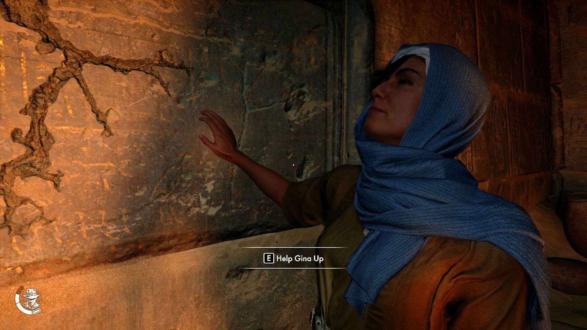 - Powróćcie do centralnej sali. Po krótkiej rozmowie z towarzyszką możecie podsadzić Ginę przy prawym przejściu - musicie odpowiednio się ustawić żeby interakcja była możliwa do wykonania (dołączony obrazek).