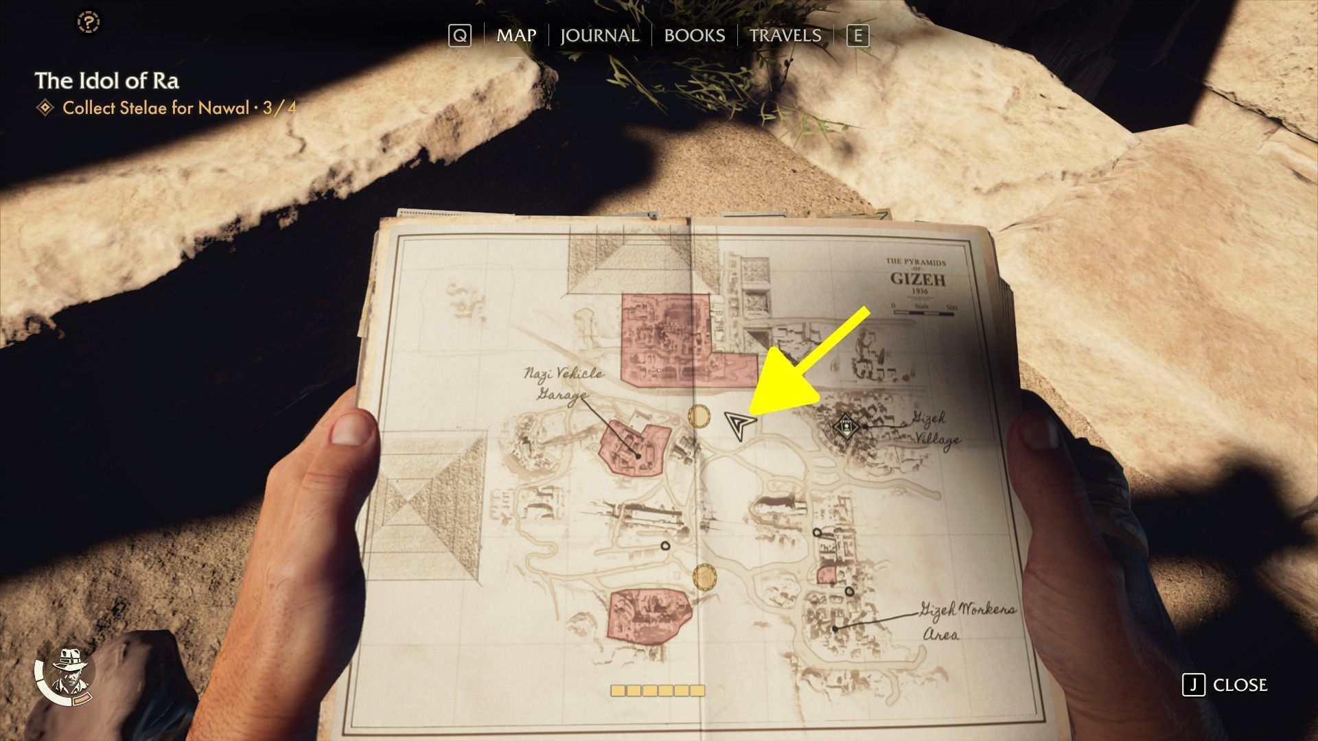 - Na potrzeby odblokowania tajemnicy Siedziba wieczności i zajęcia się jej zagadką musicie odwiedzić północną część Gizy. W miejscu z powyższych obrazków jest jedno z kilku zejść do podziemnego grobowca. Wybierzcie zejście, które nie zakłada dużego zeskoku i nie stwarza ryzyka utraty zdrowia. Uważajcie też na dzikie psy z tej okolicy.
