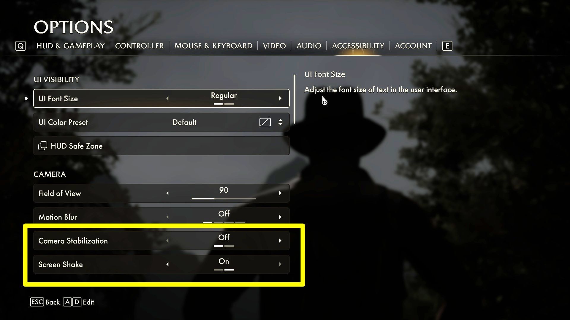 Problem opisany na tej stronie może w ekstremalnych przypadkach doprowadzać do poważnego dyskomfortu i mdłości, uniemożliwiając spędzanie większej ilości czasu z grą. Posiada on na szczęście rozwiązanie i jest ono powiązane z wbudowanymi opcjami ułatwień dostępu. W menu opcji gry przejdźcie do zakładki Dostępność. Waszą uwagę powinny zwrócić 2 opcje z kategorii Kamera: