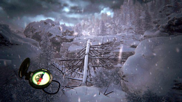 Od obozu przy radiostacji wróć na główny szlak prowadzący na wschód. Przejdź przez most, a za nim po przewróconym pniu. Przejdź kawałek dalej i w miejscu z obrazka skieruj się na południe i ponownie przejdź przez następny przewrócony pień. Kontynuuj wzdłuż drogi, natrafisz na artykuł (54"57"). Kawałek dalej znajdziesz most prowadzący na wschód. Niestety jest zniszczony, więc trzeba będzie iść naokoło.