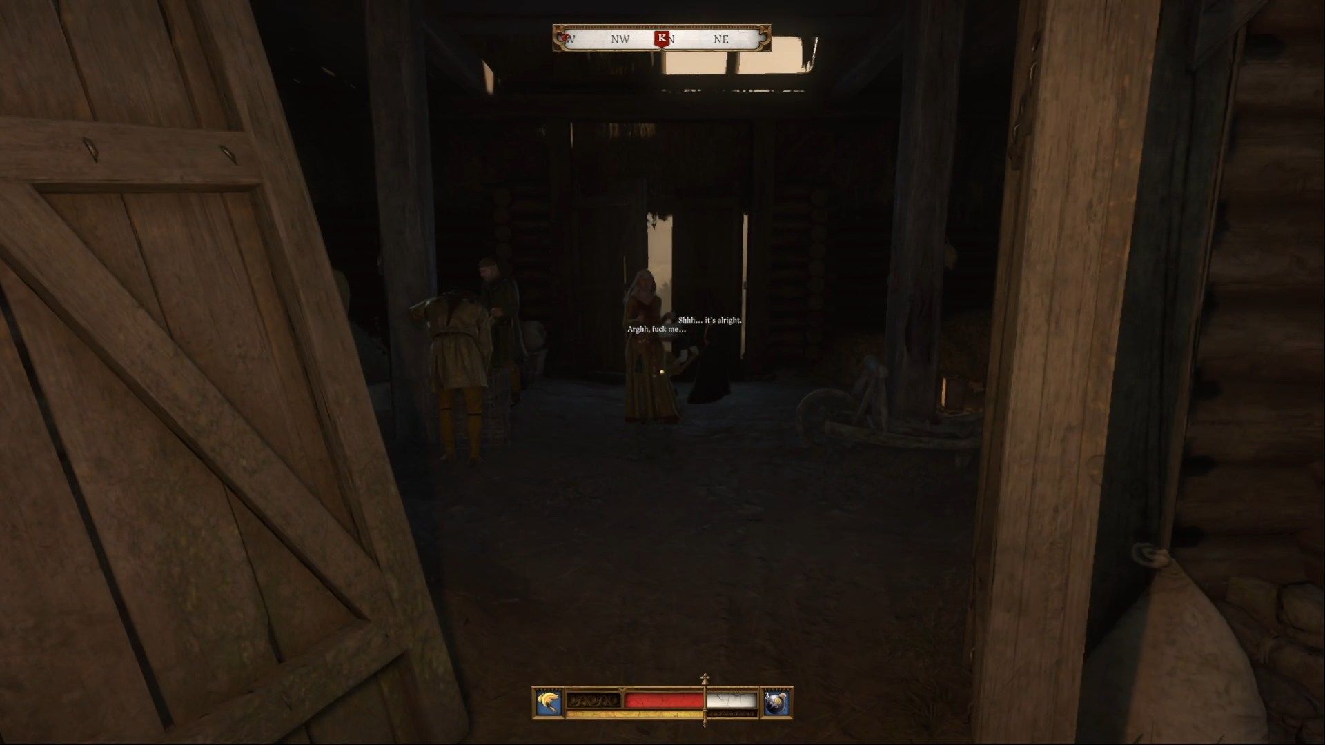 Traficie do piwnicy oberży - niestety ludzie Eryka byli szybsi. Musicie się ich pozbyć. Jeden jest na niższym piętrze, a trzech na poddaszu - są słabiej uzbrojeni i nie powinni sprawić wam przesadnych problemów. Po pozbyciu się wrogów podążajcie za Samuelem, aż nie zatrzyma się na poboczu by pomóc rannym. Wejdźcie do wąskiej uliczki na lewo i do budynku, w którym znajdziecie matkę Samuela, Sarę.