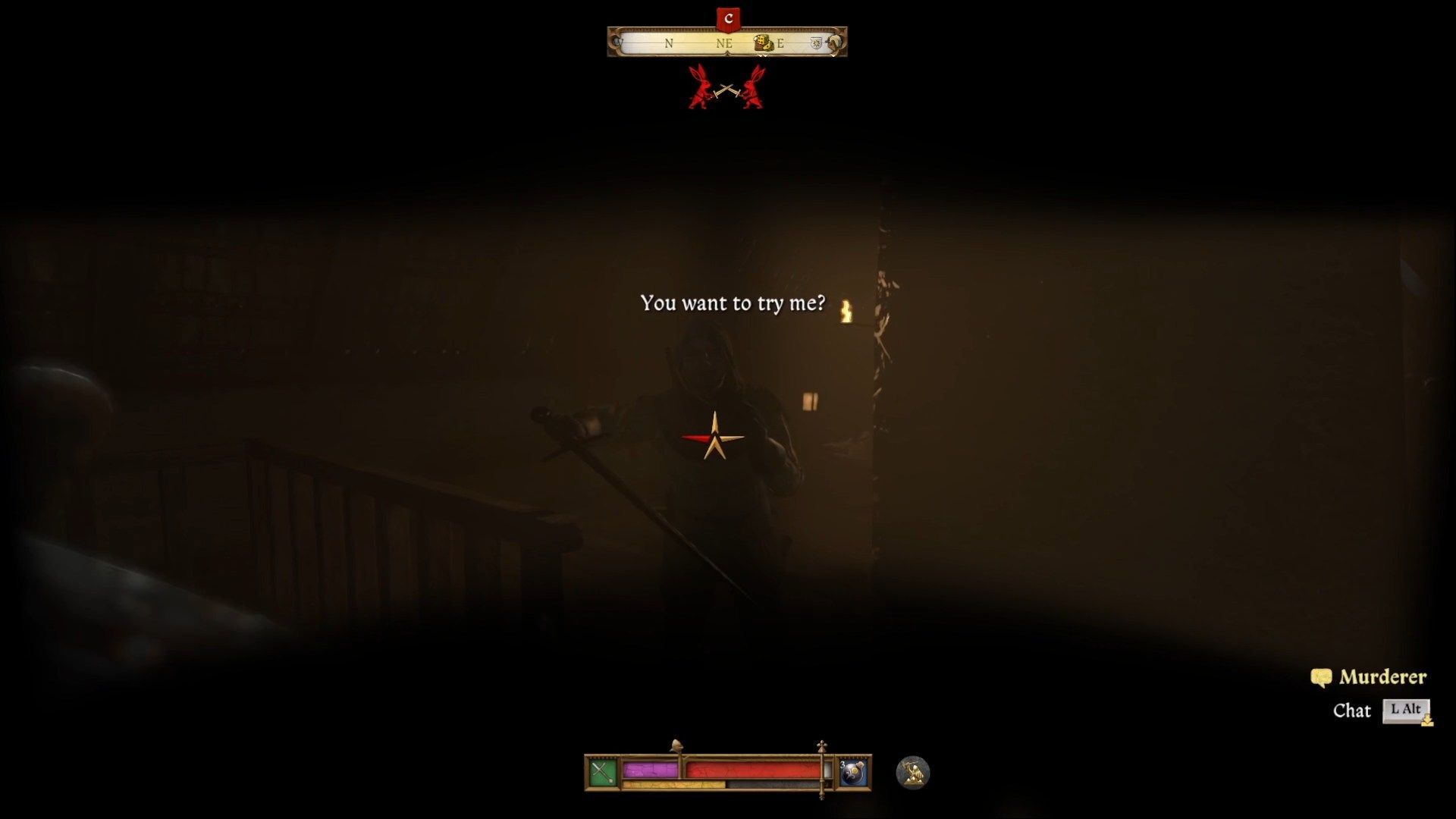 Hej - to oznacza że coś przeskrobałeś i Henryk jest poszukiwany przez miejscową straż. Strażnicy w tym obszarze będą próbować cię aresztować, a ikonka zniknie dopiero, kiedy opłacisz grzywnę, wymigasz się od kary perswazją lub przyjmiesz karę.