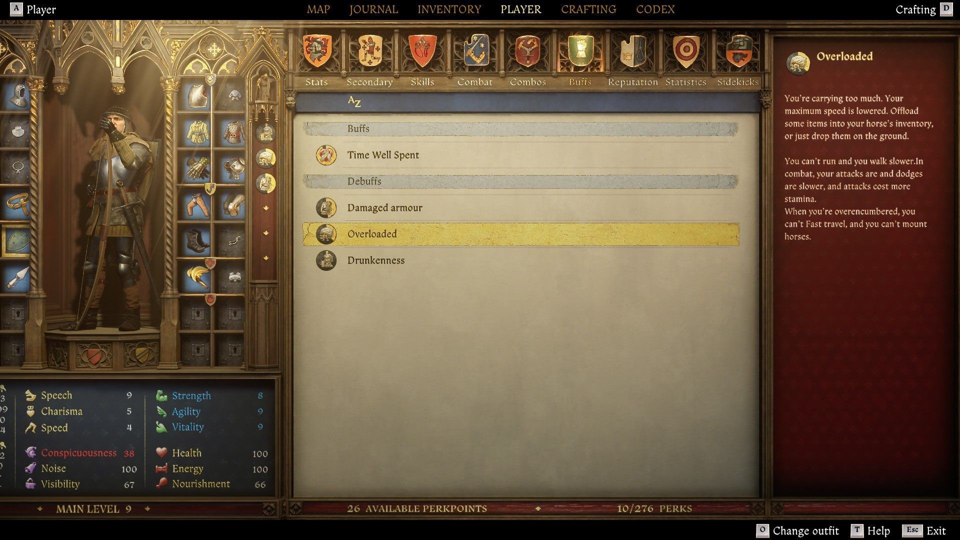 Jeżeli ciężar Waszych przedmiotów przekroczy aktualny limit, na Henryka nałożony zostanie status Przeładowanie. Przeciążony bohater:
