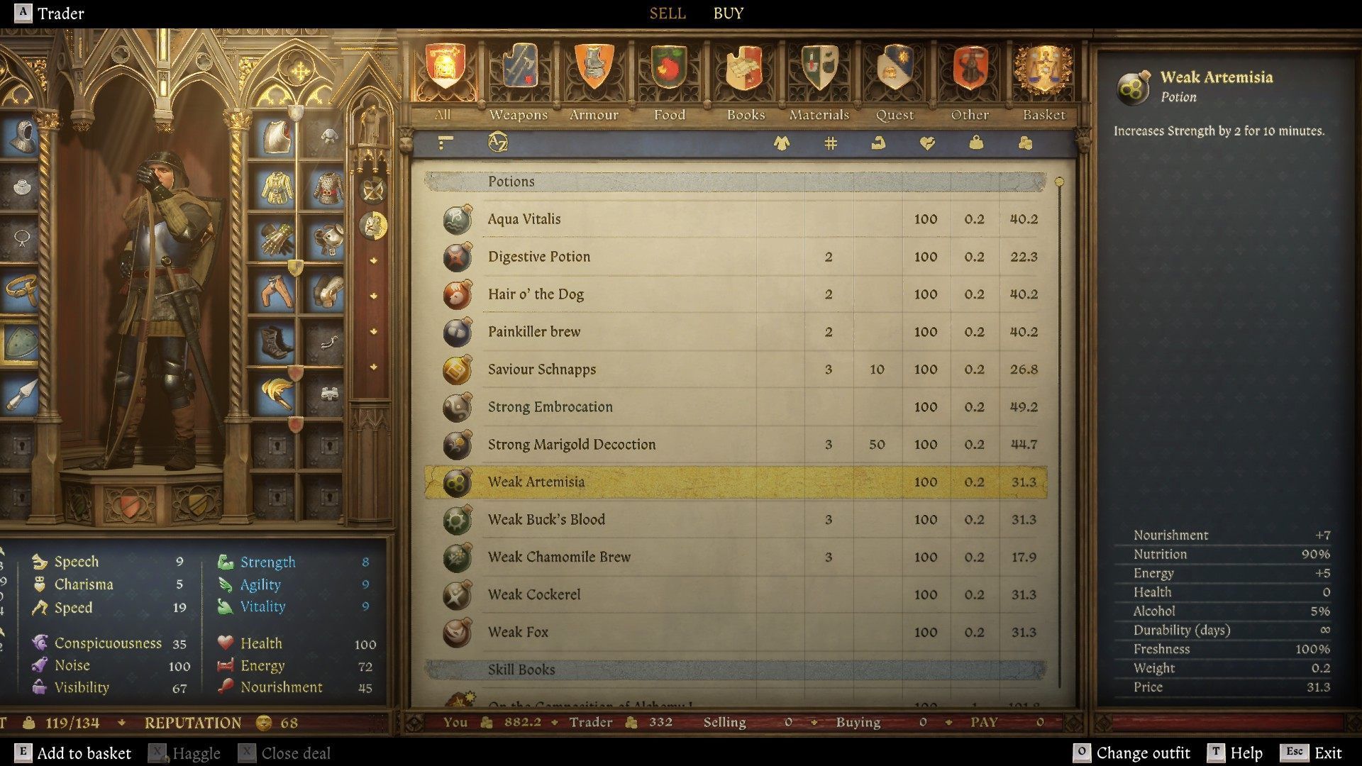 Na udźwig wpływa również tymczasowe podbijanie statystyki siły. Eliksiry takie jak mikstura artemisia pozwolą Wam przez pewien czas nosić zdecydowanie więcej przedmiotów. Preparaty tego typu kupicie u aptekarzy.