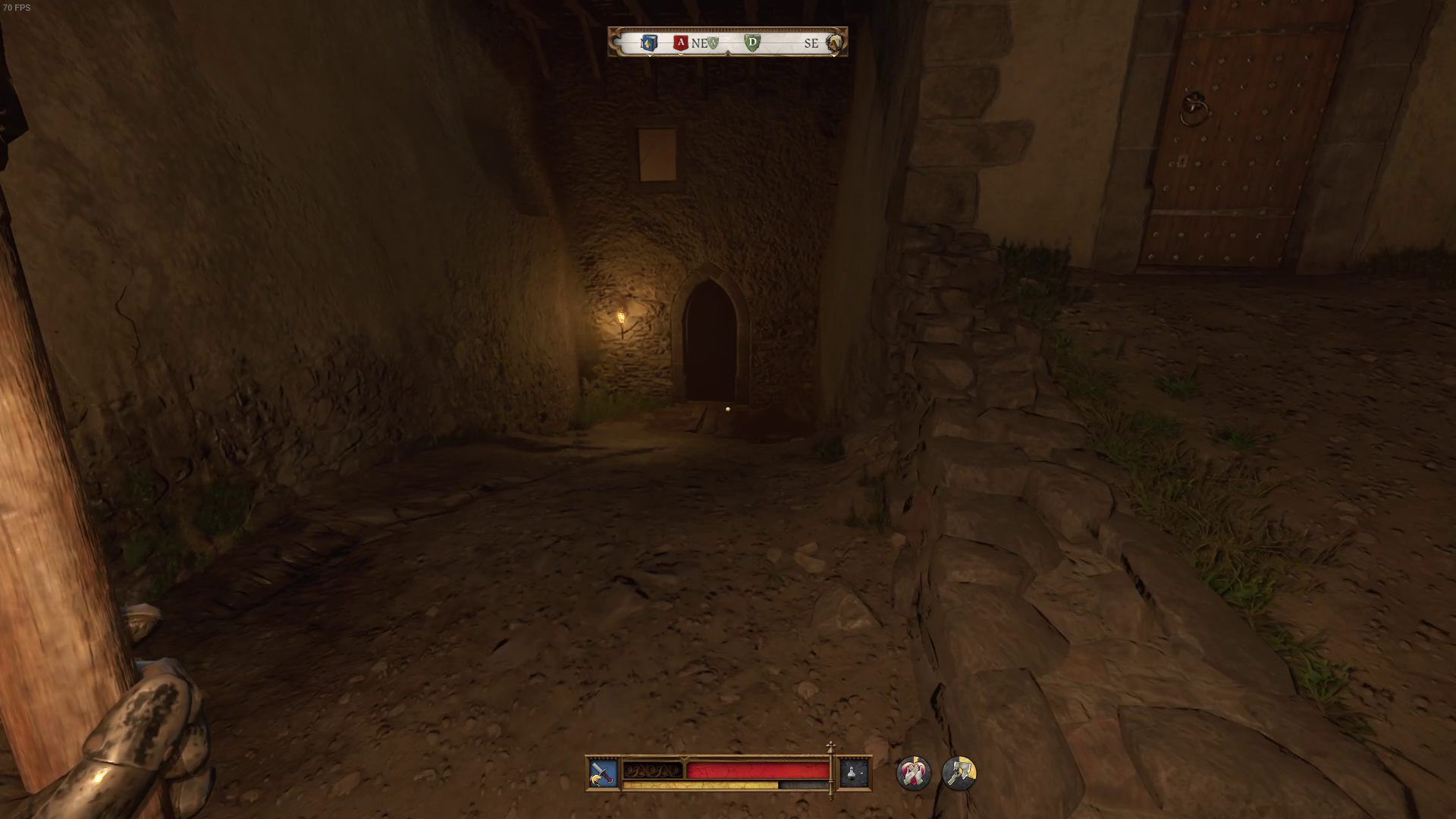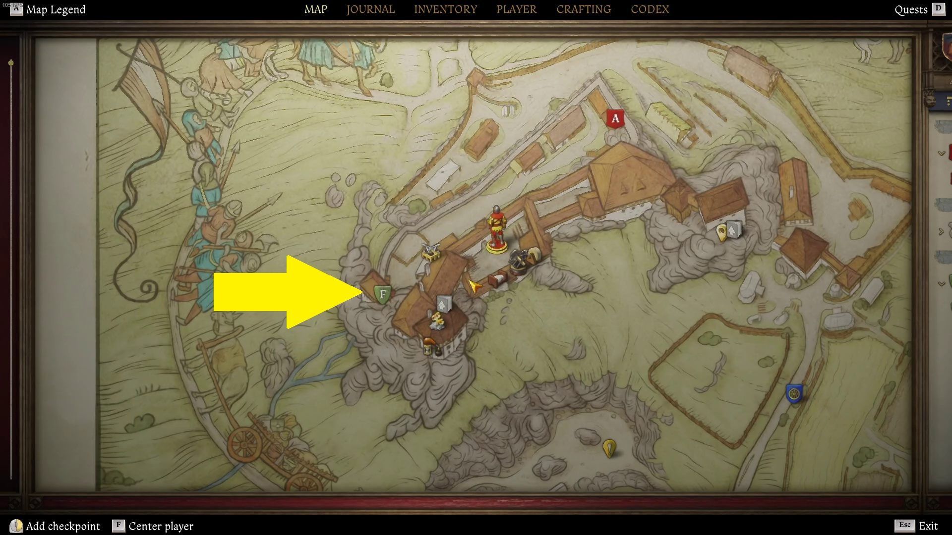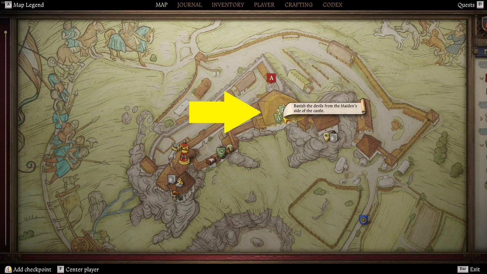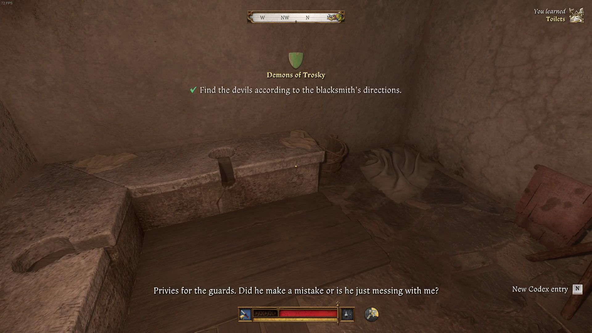 Idąc za jego wskazówkami traficie do komunalnego wychodka na przedsionku zamku (obok areny walk).