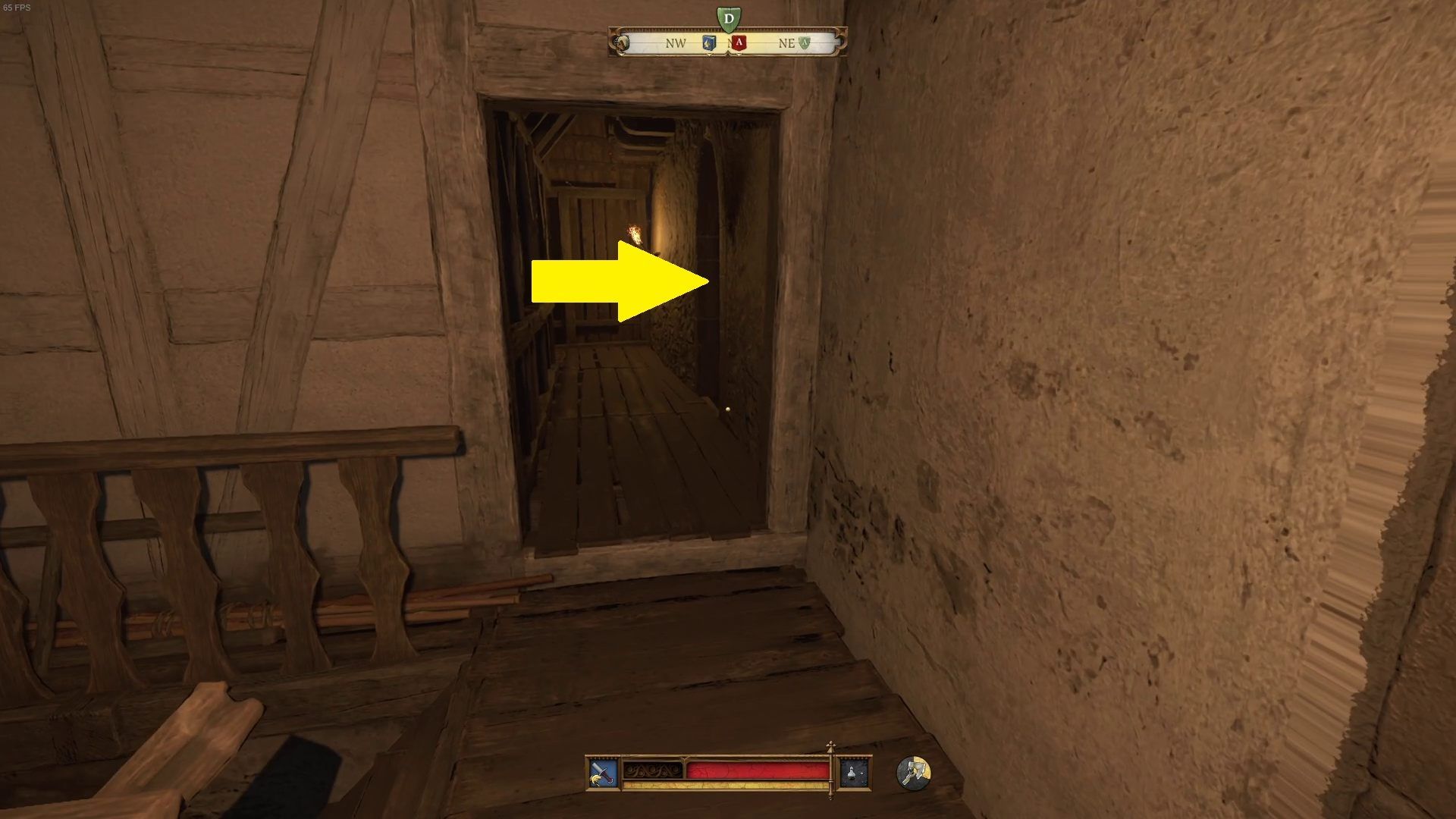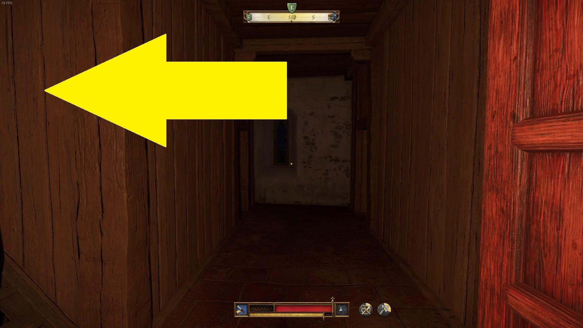 - By dostać się do czwartego paleniska, wróćcie na korytarz i zejdźcie piętro niżej. W czerwonym korytarzu przejdźcie przez drewniane drzwi.