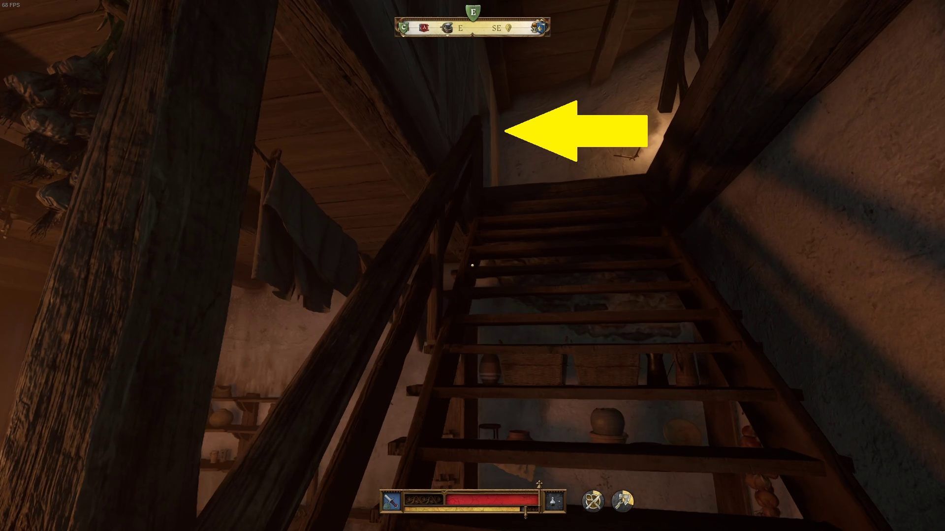 - Następne palenisko znajduje się kilka pięter wyżej. Wejdźcie po schodach, a w spiżarni skręćcie w lewo. Wejdźcie dwa piętra po drewnianych schodach, aż nie dotrzecie do korytarza o białych ścianach. Wejdźcie do pomieszczenia na wprost od schodów. Znajdziecie tam kolejne palenisko.