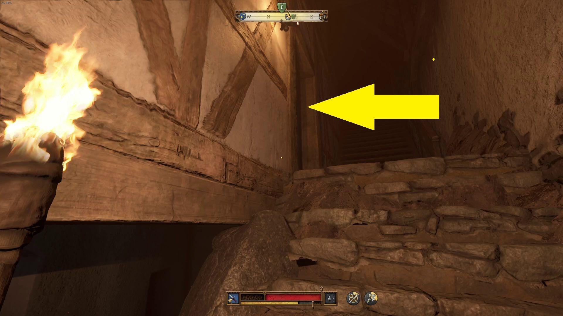 - Trzecie palenisko znajduje się w sąsiadującym pomieszczeniu. Przejdźcie przez drzwi na prawej ścianie.