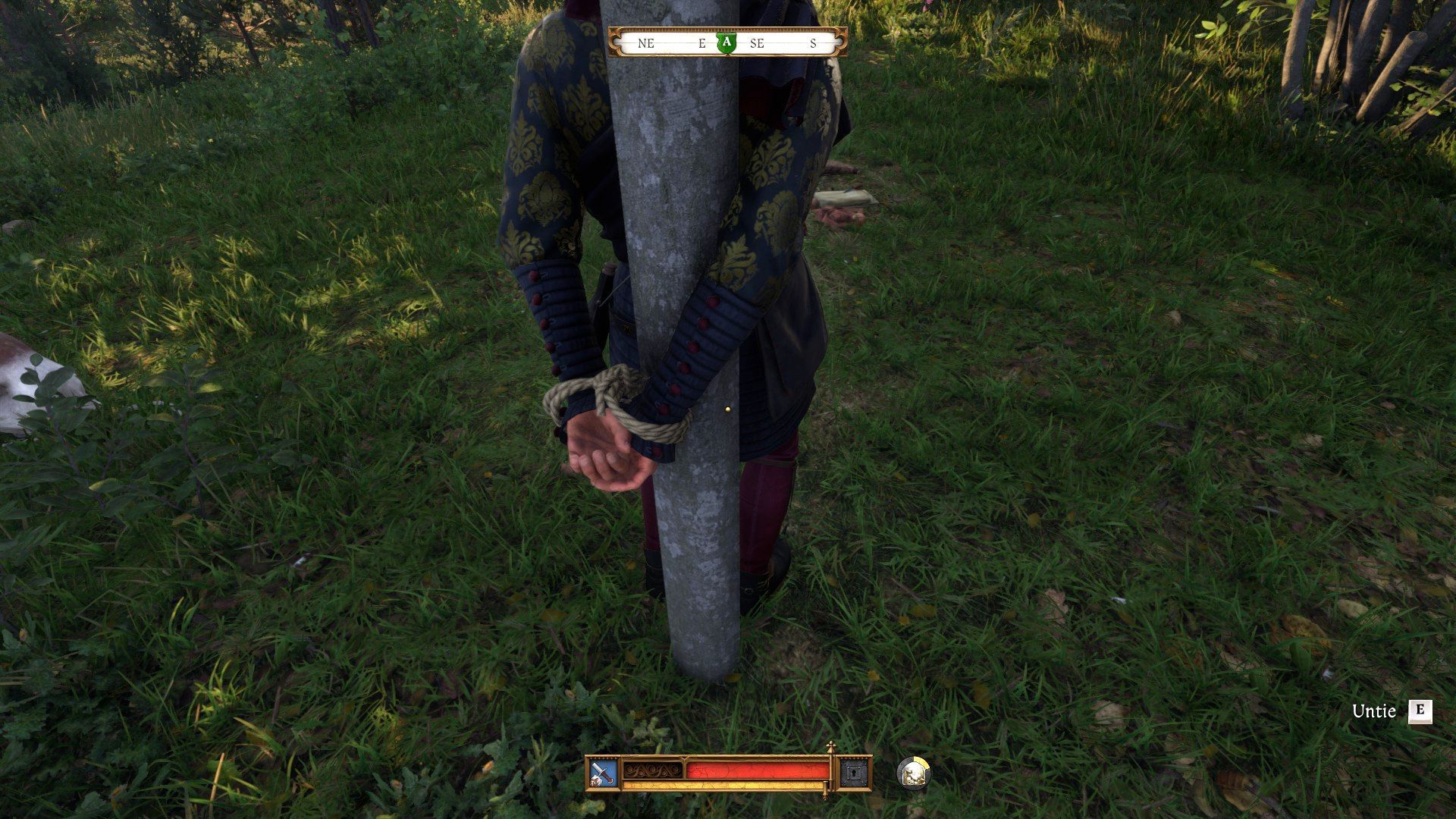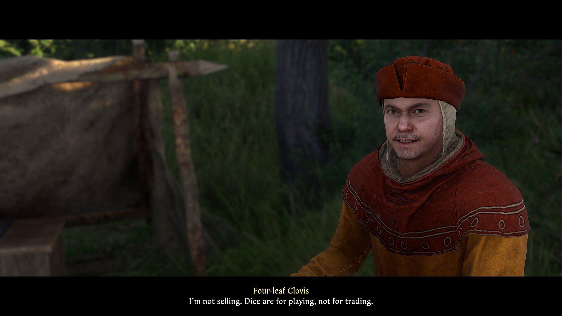 - Wrogie zwierzęta powinny skupić się na Henryku i nie musicie obawiać się o losy Wojciecha. Po ich wymordowaniu podejdźcie od tyłu do malarza żeby go oswobodzić. Dowiecie się, że Wojciecha okradli i przywiązali bandyci. Możecie zaoferować pomoc w odzyskaniu skradzionych rzeczy - bezinteresowną lub z obietnicą nagrody.