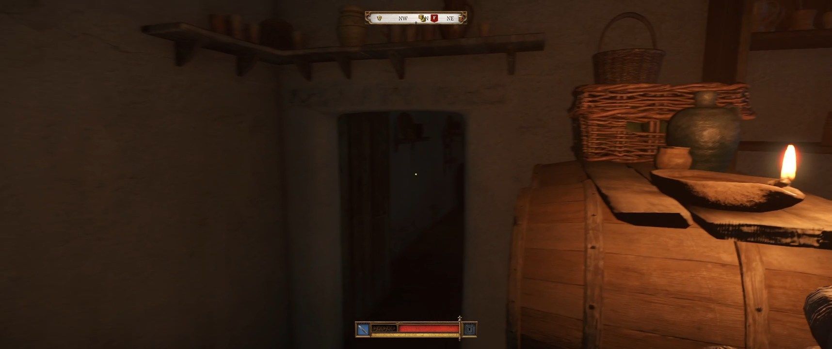Po kilku przerywnikach filmowych będziecie musieli porozmawiać z Katarzyną. Najpierw jednak musicie się umyć w balii na podwórku karczmy. Rozmowa z początku nie przyniesie skutków, lecz nawet jeśli nie zaliczycie testu perswazji, otrzymacie potrzebne informacje w następnej cutscence. Następnie musicie porozmawiać z karczmarką, która da wam zadanie by odpracować dług za posiłek. Będziecie musieli przenieść kilka worków z wozu do spiżarni. Porozmawiajcie z Janem Ptaszkiem by poprosić go o pomoc - niestety młody panicz wystawi was.