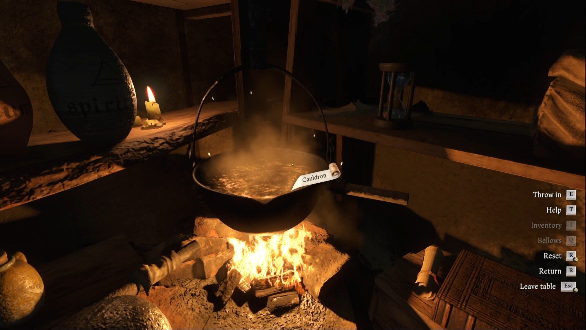 - Postawcie kocioł nad ogniem i zwiększcie ogień, aż wywar nie zacznie wrzeć. Odczekajcie długość pojedynczego opróżnienia klepsydry.