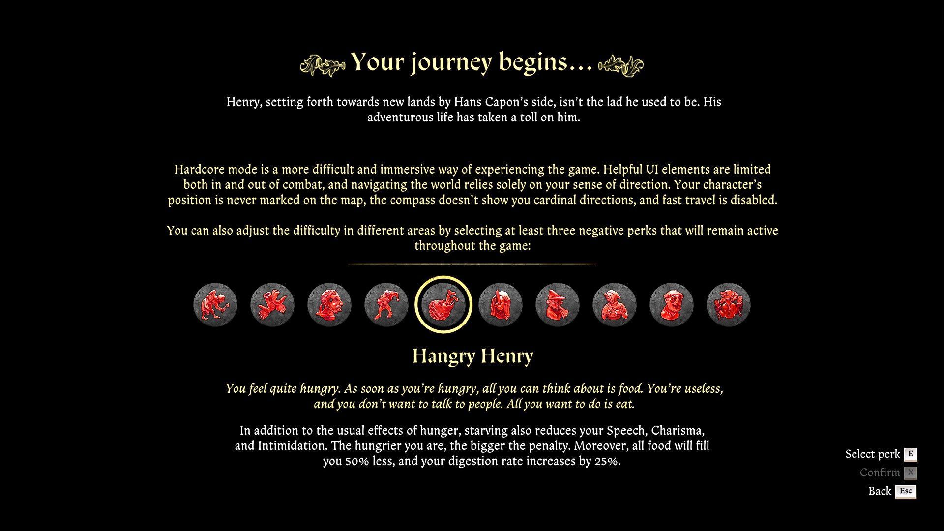 Na potrzeby przejścia gry w trybie hardkorowym musicie wybrać co najmniej 3 negatywne atuty z poniższej listy. Możecie też celowo jeszcze bardziej utrudnić rozgrywkę i aktywować wszystkich 10 atutów. Ukończenie gry na takich ustawieniach odblokuje trofeum Na Przekór Wszystkiemu.