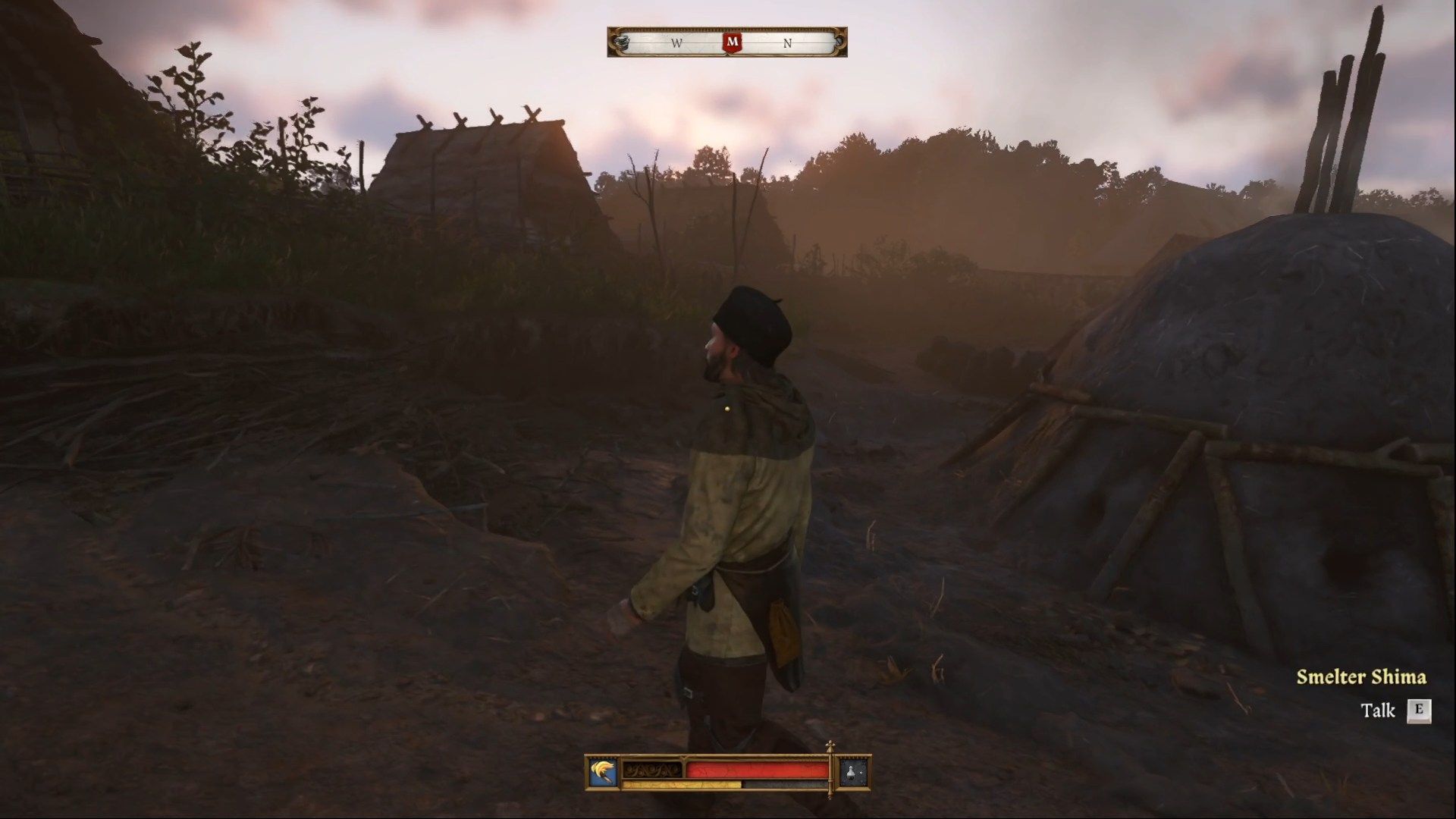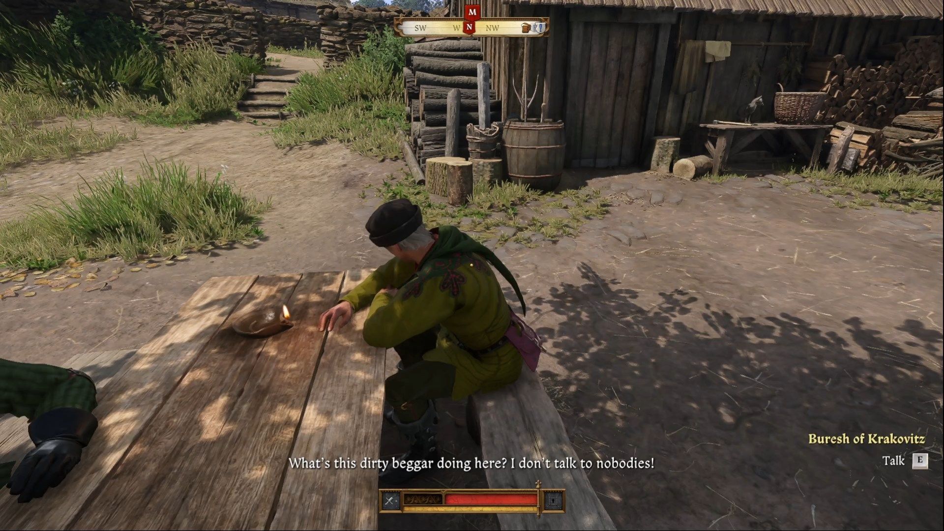 - Samka znajdziecie poza kopalnią, pod swoistą altaną ze słomianym dachem - w strefie wypoczynkowej dla górników. Możecie przekonać go do mówienia (Retoryka - Średni, Przerażenie - Łatwy), przekupić (200 groszy) lub zagrać z nim w kości.