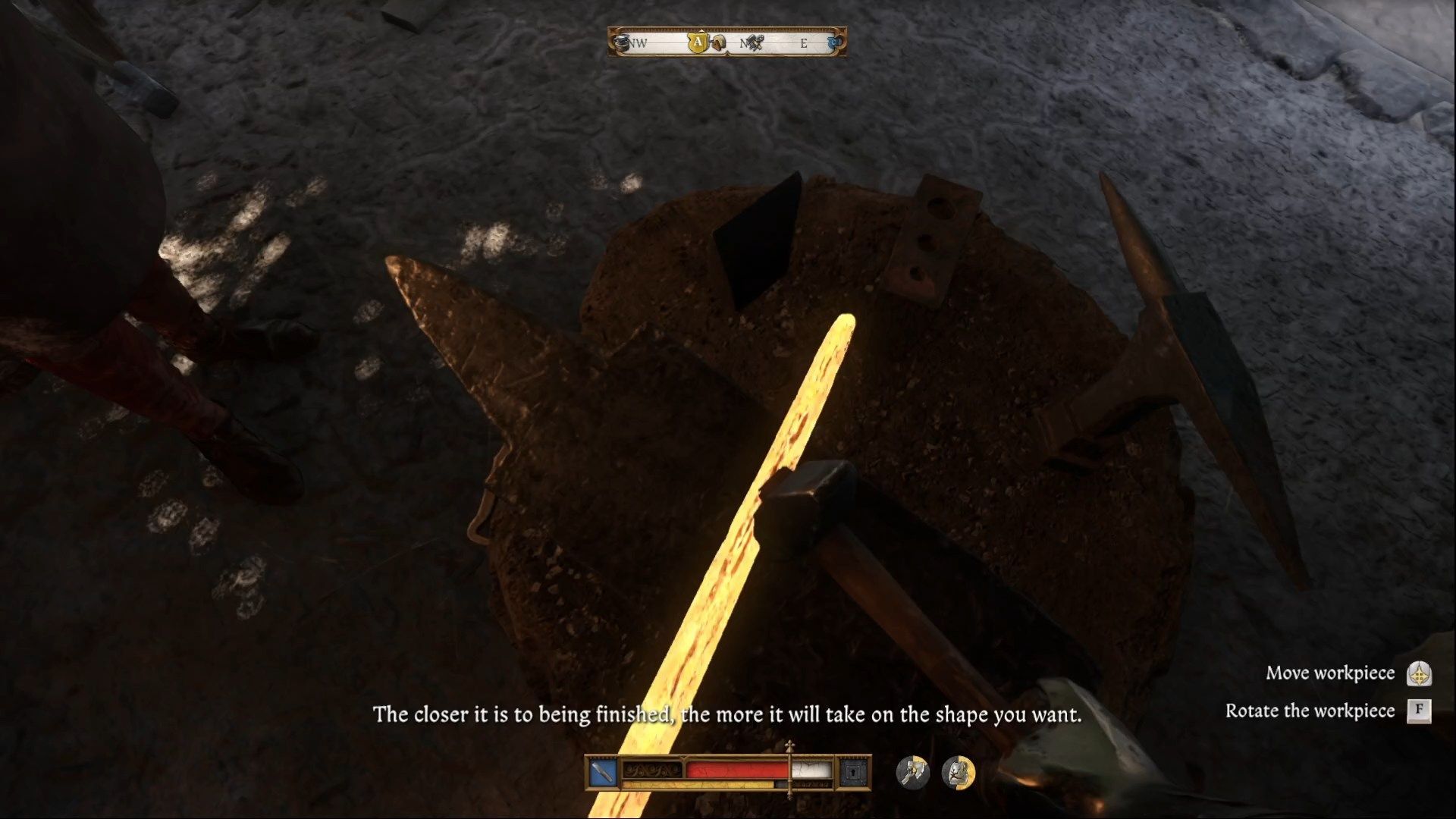 Pierwsze zadanie jest bardzo proste i służy głównie jako samouczek kowalstwa. Udajcie się do Tachowa, do kuźni kowala Radowana. Porozmawiajcie z kowalem i zapytajcie go o pracę. Będziecie musieli wykuć miecz by się wykazać - wszystkie potrzebne materiały leżą w skrzyni tuż obok kowadła. Mini-gra składa się z ogrzewania żelaza w ogniu aż nie przybierze żółtego koloru, po czym uderzania go młotkiem w różnych miejscach, w równych odstępach. Radowan pokieruje was przez proces kucia.