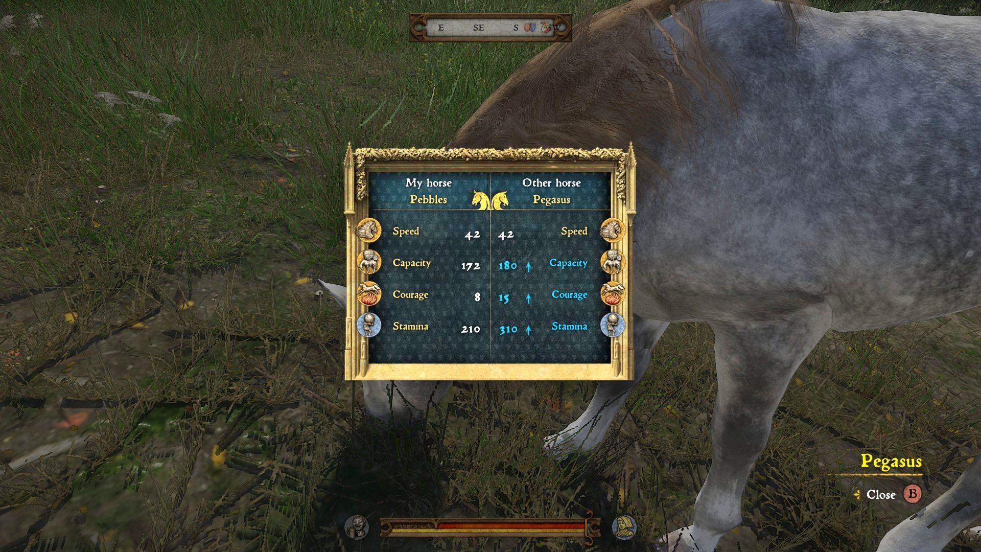 - Po wejściu w interakcję z danym wierzchowcem pojawią się jego statystyki i gra pozwoli Wam je porównać z aktualnymi statystykami Waszego konia. Niebieski kolor oznacza poprawę statystyk. W trakcie rozmowy ze sprzedawcą koni możecie wspomnieć interesującego Was konia i potwierdzić chęć jego zakupu. Zakup konia może być dużym wydatkiem, tak więc warto się potargować.