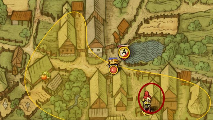 Poszukiwana osoba jest przetrzymywana w pokazanej na obrazkach stodole w wiosce. Domyślnie stodoły tej pilnuje jeden ze strażników i nie zostaniesz wpuszczony do środka nawet jeśli powołasz się na Radzika (nie możesz też wybrać żadnej unikalnej opcji dialogowej). Oto możliwe rozwiązania problemu: