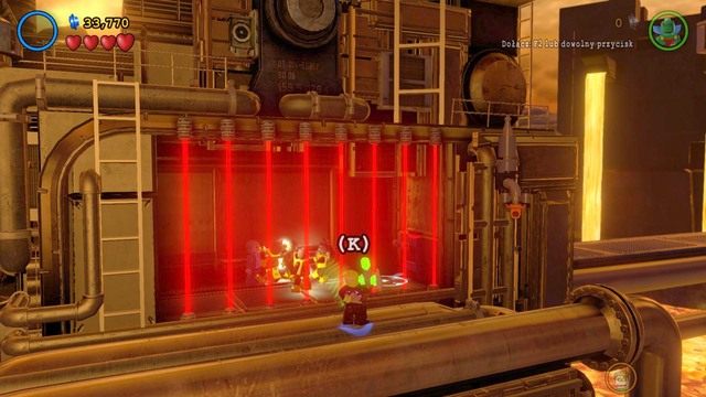 Czerwony klocek zdobędziesz w momencie walki z Sinestro. Przejdź do prawej strony i skorzystaj z czerwonego podestu jako Plastic Man. Po wykonaniu jego sztuczki obok ciebie pojawi się czerwony klocek.