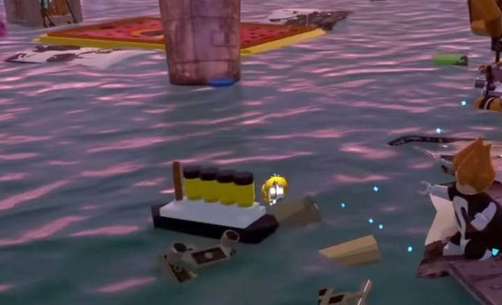 Płyń pod wodę i w rogu dostrzeżesz zniszczalny fragment samolotu. Za nim znajdziesz minizestaw.