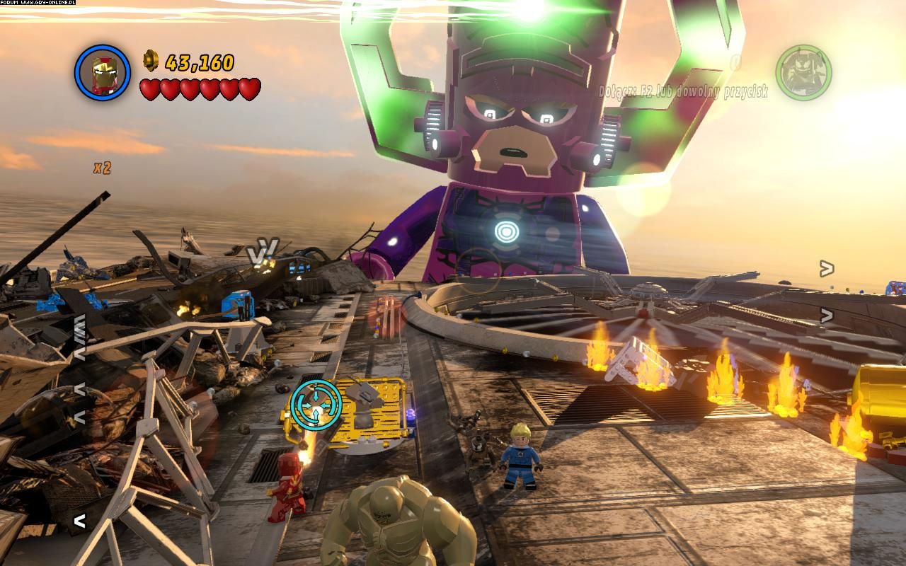 Mam problem z rundą ostatnią na drugiej planszy gdy jest się Venomem ,Iron manem ,Adominatorem i ludzką pochodnią . Pierwsze co trzeba zrobić to zniszczyć to coś co leży na złotej płytce którą trzeba potem podgrzać. Lecz gdy próbuje zniszczyć tą satelite czy co tam leży wypadają na tą płytkę jakieś kawałki lego przez które nie da się podgrzać płytki. Próbowałem to zniszczyć wszystkimi postaciami ale na nic. Prosze o pomoc męcze się z tym już miesiąc !!! ( A i jak coś mam oryginalną gre )