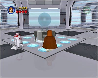 W pomieszczeniu widocznym powyżej szybko przejdź po niebieskich punktach tworzących kwadrat, a następnie użyj Mocy na urządzeniu, które się wysunęło. Przejdź w stronę wskazaną przez kloniarza i otwórz drzwi używając R4. Dojdziesz do pokoju Jango Fetta. Pozbądź się robotów i wyjdź na zewnątrz.