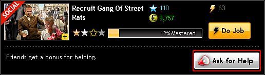Drugi typ zadań wymagającego dokładniejszego omówienia to pozycje symbolizowane przez ikonę megafonu. Cechują się one tym, że kładą duży nacisk na współpracę ze znajomymi. Klikając na przycisku Ask for Help (Poproś o pomoc) będziesz mianowicie mógł poprosić o wsparcie w zaliczeniu takiego zadania. Pamiętaj o tym, że nie musisz pozostawiać swojego wpisu na Facebookowej tablicy, gdyż po zamknięciu okna odpowiednia informacja i tak pojawi się w ich oknach wiadomości (o ile oczywiście czytają tego typu zawiadomienia). Nie polecam wykonywać zadań z tej grupy w pojedynkę z uwagi na niekorzystny przelicznik ilości wydanej energii do zdobytego doświadczenia. Wyjątkiem może być sytuacja, w której chcesz pozbyć się zdobytych jednostek energii (na przykład po użyciu paczki z energią), bez poniesienia ryzyka zmarnowania ich dużej ilości.