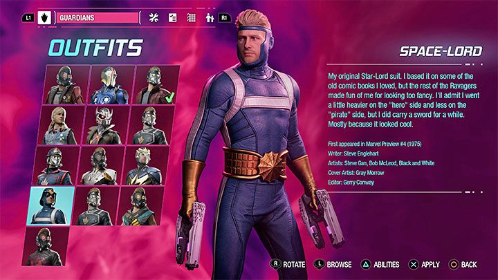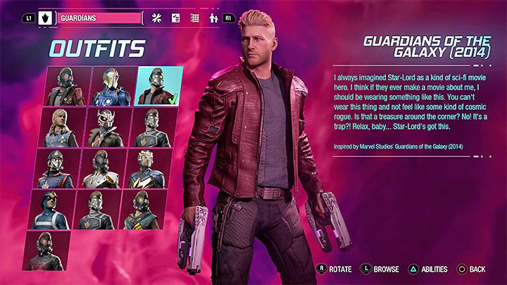 Na tej stronie poradnika do gry Marvel's Guardians of the Galaxy znajduje się zestawienie strojów dostępnych dla Star-Lorda (Petera Quilla). Pokazujemy jak wyglądają stroje/skórki, a także informujemy w jakich okolicznościach można wejść w ich posiadanie.