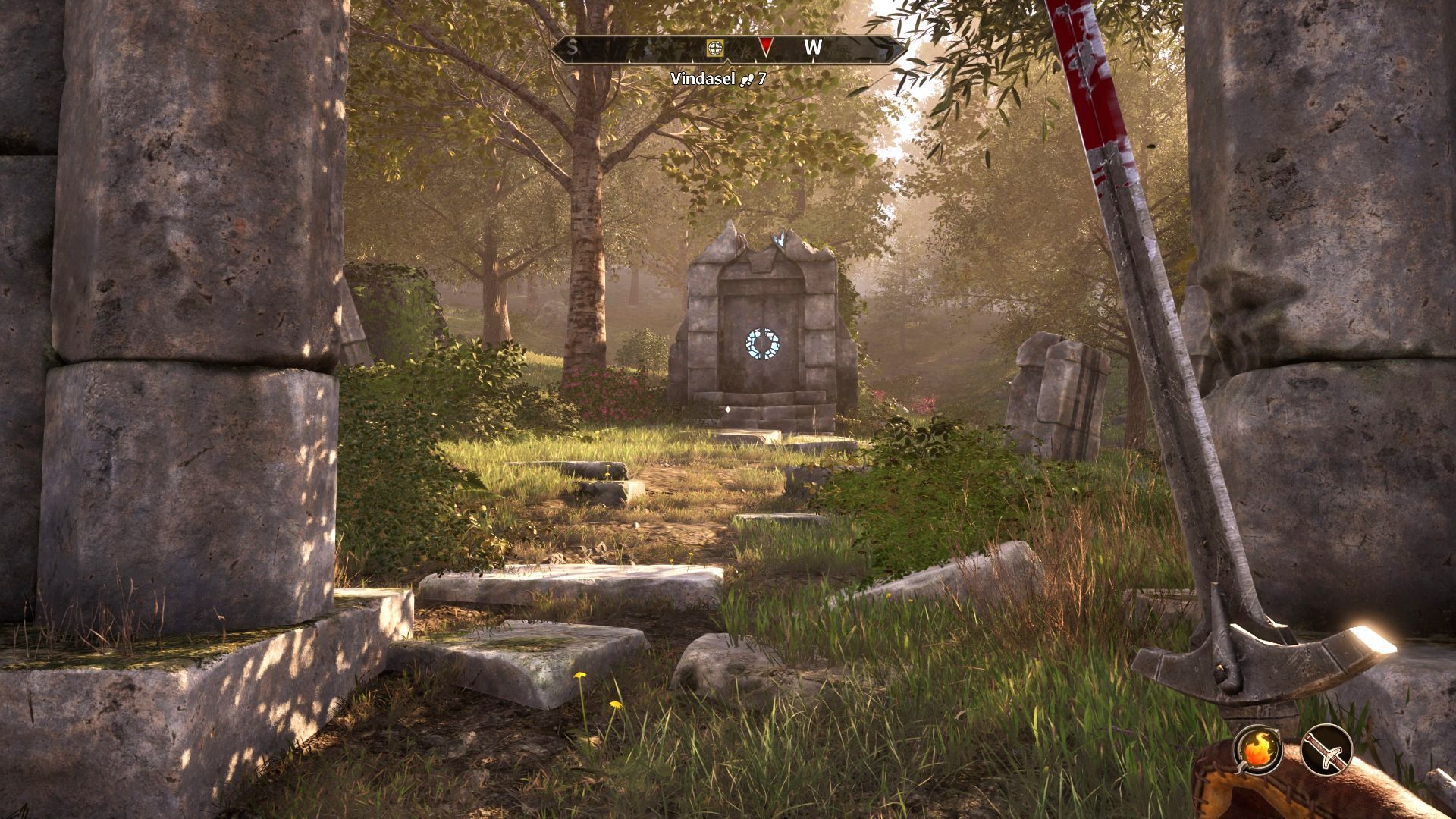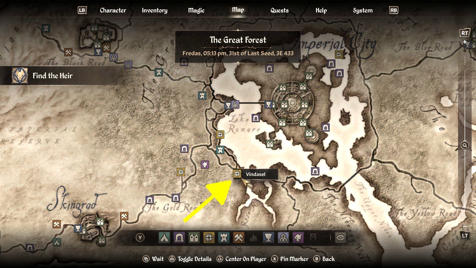 - Cel podróży to elfie ruiny Vindasel. Znajdują się one w Wielkiej Puszczy na południowy-zachód od Nadbrzeża Cesarskiego Miasta i wyjścia z kanałów. Pokonajcie lub omińcie kilka słabych potworów przed ruinami, a następnie znajdźcie wejście do podziemnych ruin.