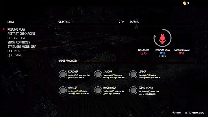 Zdobywanie odznak jest związane z zaliczaniem misji w 100 procentach. Dodatkowo powiązane są z nimi 4 trofea z kategorii Gameplay master. Oznacza to, że chcąc zdobyć platynowe trofeum w Oddworld Soulstorm musimy w 100% zaliczyć wszystkie wyzwania, tzn. odblokować wszystkie platynowe odznaki.