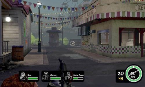 Po dotarciu do wesołego miasteczka włączy się animacja, po której będziesz musiał rozprawić się z trzema przeciwnikami naraz - Ronem, Osamą i wujkiem Davem. Omiń stojący na placu posąg i zacznij biec w stronę tej części miasteczka, gdzie znajdują się restauracje i małe domki. Z lewej strony tej dzielnicy znajdziesz budkę z napisem Phone and accesories - wejdź do niej, ukryj się za ladą i zacznij z tej pozycji ostrzeliwać trójkę wrogów, która będzie próbowała cię atakować. Jest to świetne miejsce, ponieważ jesteś kryty, a twoi przeciwnicy wystawieni na ostrzał. Uważaj jednak też na zwykłych przeciwników, którzy mogą na przykład wejść do budynku, eliminuj ich w pierwszej kolejności. Gdybyś miał problemy z amunicją lub zdrowiem to warto zrobić jakąś rundkę po mieście, wyeliminować kilku terrorystów i zabrać im broń. W przypadku zdrowia możesz ukryć się w toalecie znajdującej się na lewo od budki z której strzelasz do przeciwników. Po zabiciu całej trójki misja zakończ się.